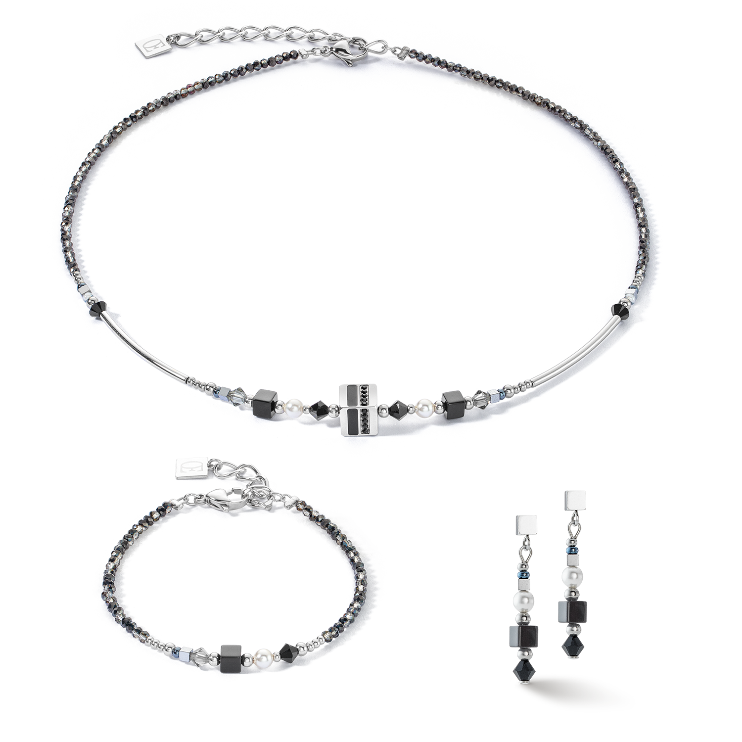 Clean, cool and absolutely on point - the GeoCUBE® Fusion Summer Creole silver couture combines cool Swarovski® crystals, gently sparkling rock crystal cubes and elegant stainless steel in silver to...