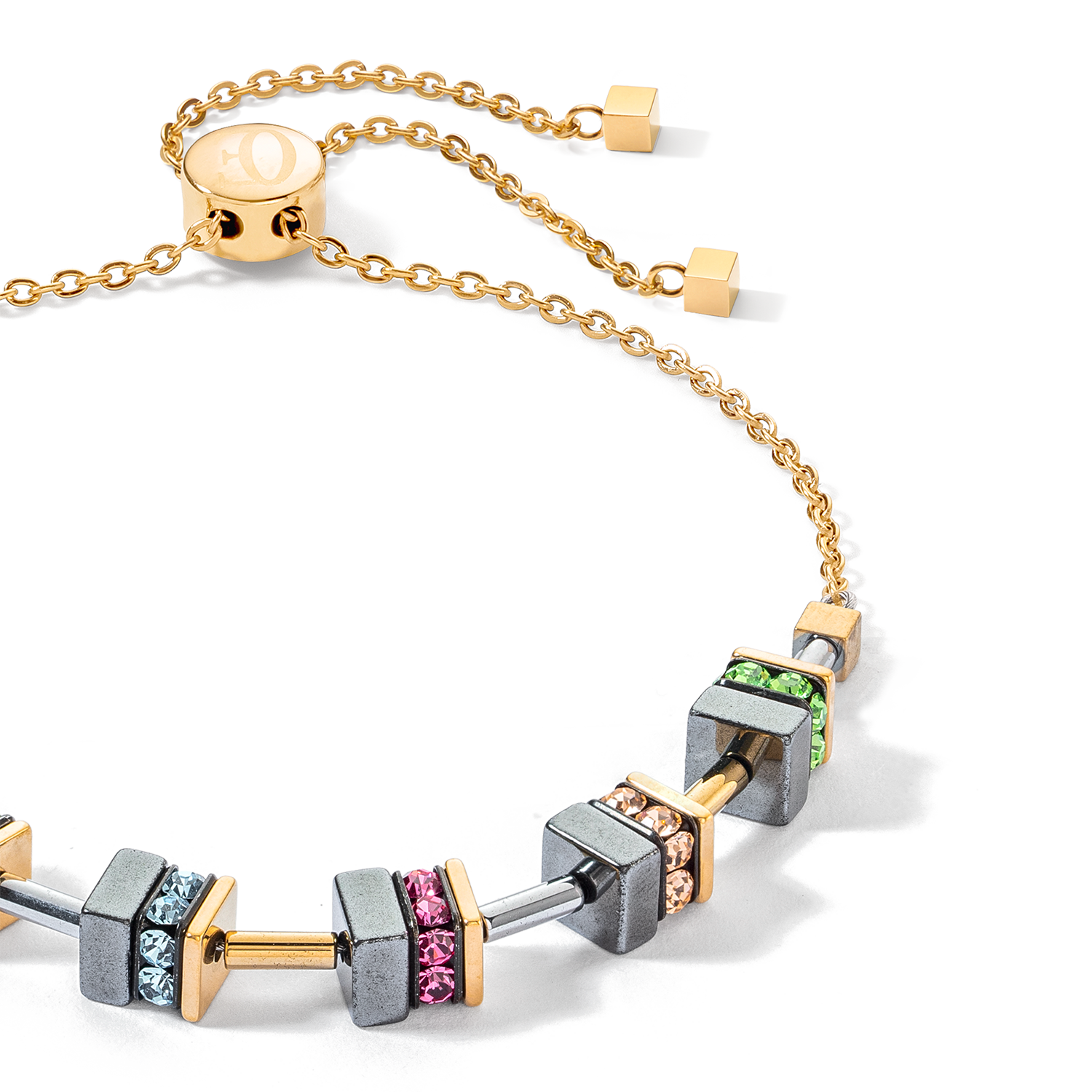 Playful, bright, elegant - the GeoCUBE® Precious Statement earrings gold-spring capture the warm, fresh colours of spring. Radiant Swarovski® crystals, fine gemstone cubes and golden accents resonate with every movement...