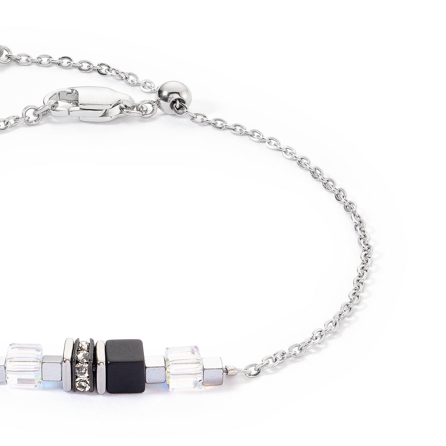 Light, modern and always stylish - the GeoCUBE® Fusion Summer bracelet silver couture combines cool Swarovski® crystals, faceted rock crystal cubes and elegant stainless steel in silver to create a...