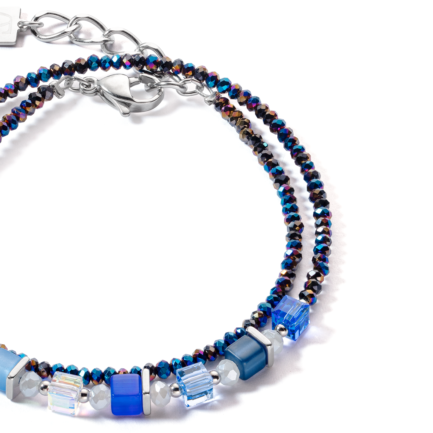 Cool elegance with a touch of freshness - the GeoCUBE® Iconic bracelet Ice Serenity silver combines soft blue tones with shiny stainless steel in silver. The fine GeoCUBE® elements create...