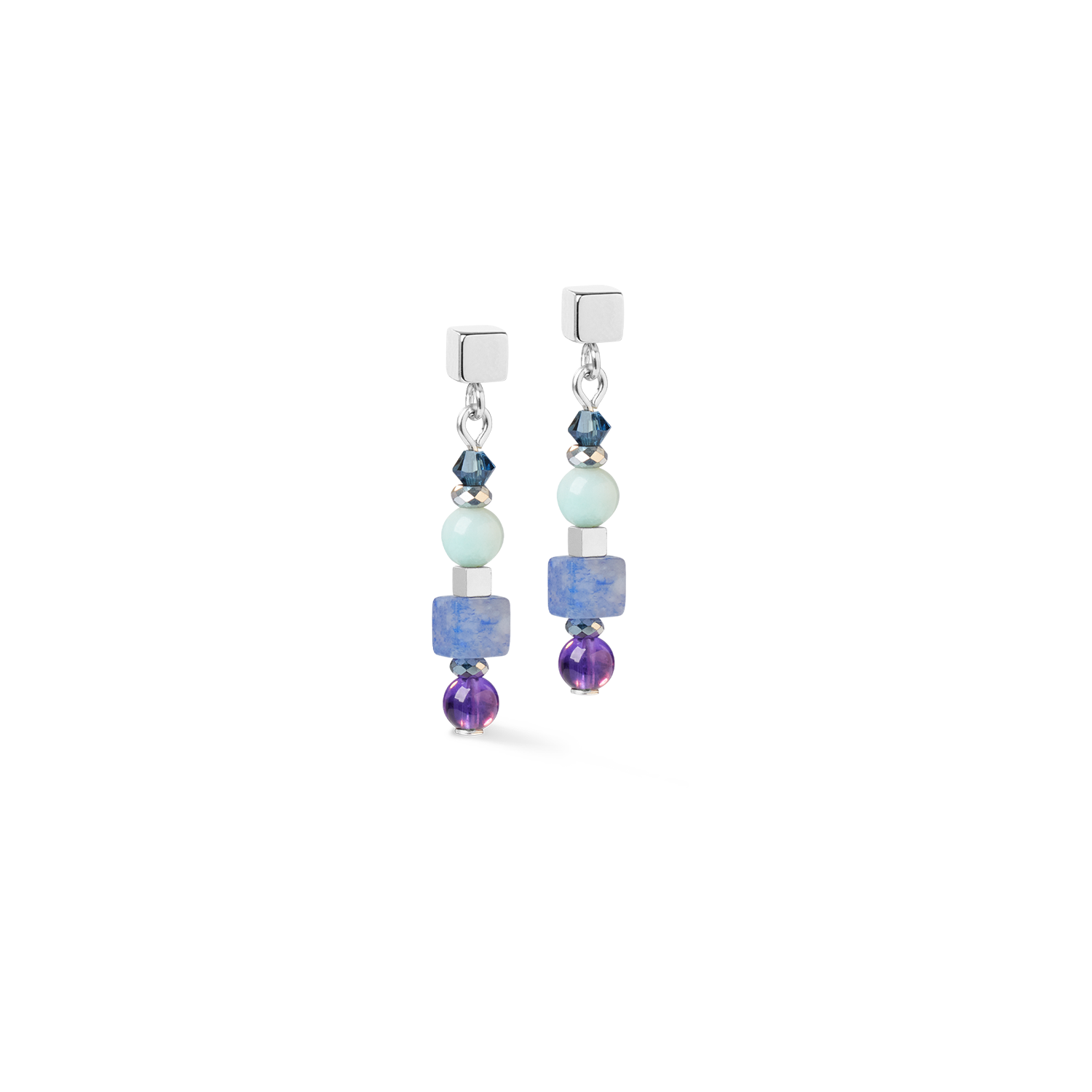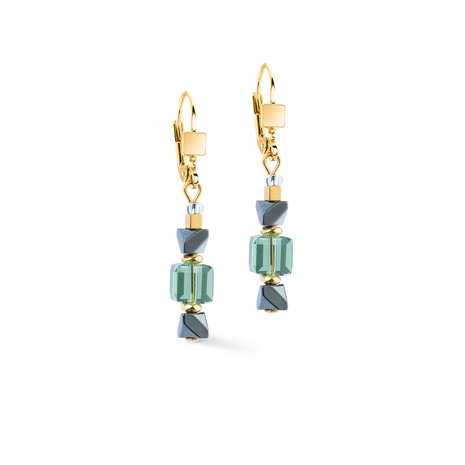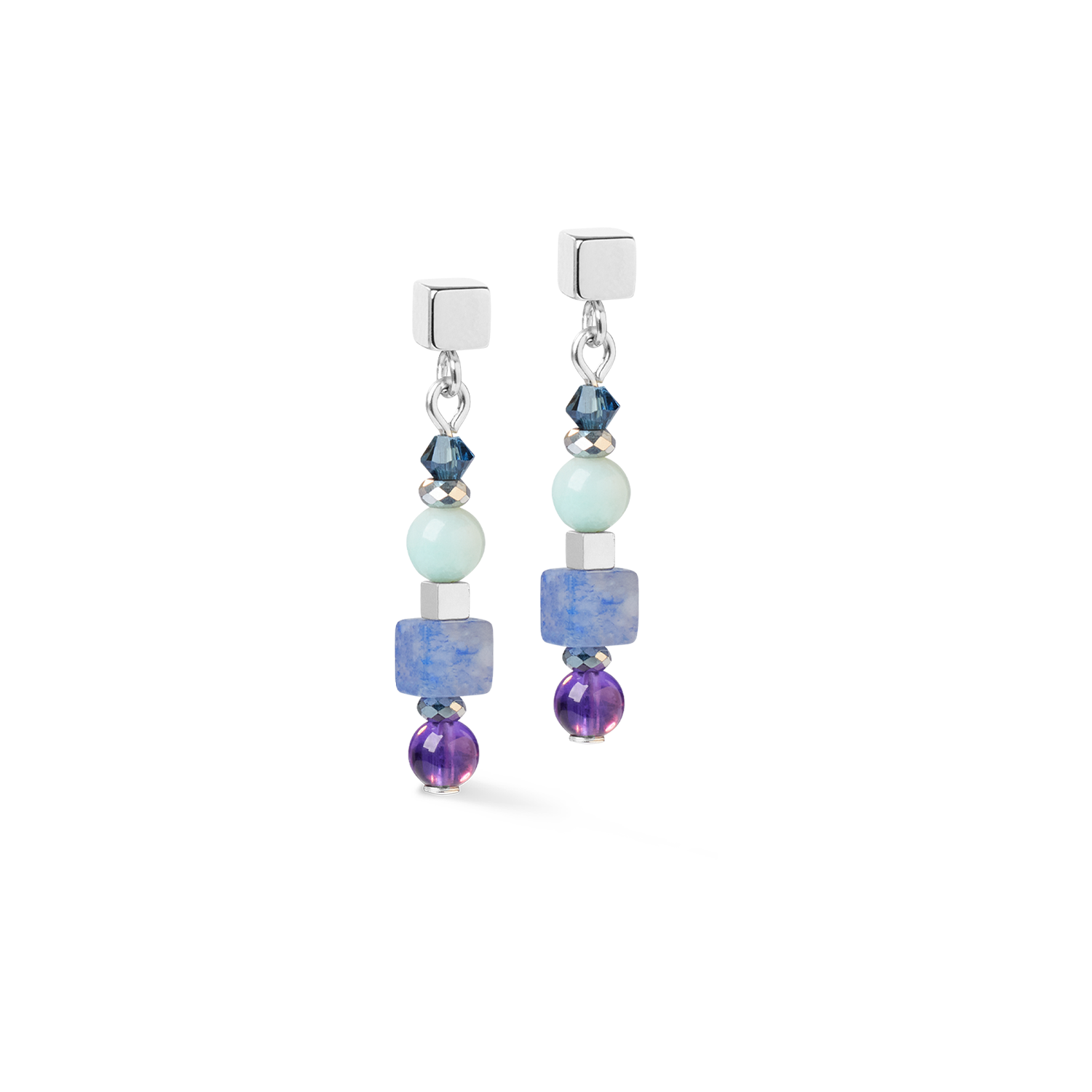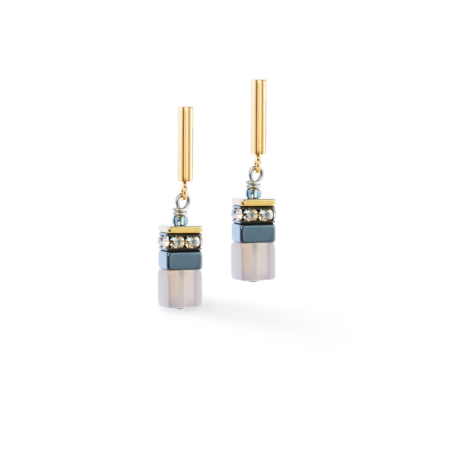 Whether delicate earrings with a green stone, the agate, feminine rose quartz earrings or expressive earrings with a blue stone, a sodalite – each of our precious stones sparkles in its very own shade. Those who prefer the monochrome look will find what they are looking for in our GeoCUBE® tone-on-tone category. Here, precious stones and crystals from a similar colour spectrum are combined with each other. Things are more colourful in the multicoloured GeoCUBE® category. Here you will find colourful creations whose nuances have been skilfully and stylishly matched by our designers.