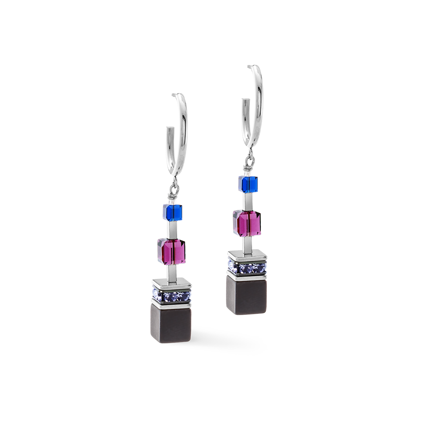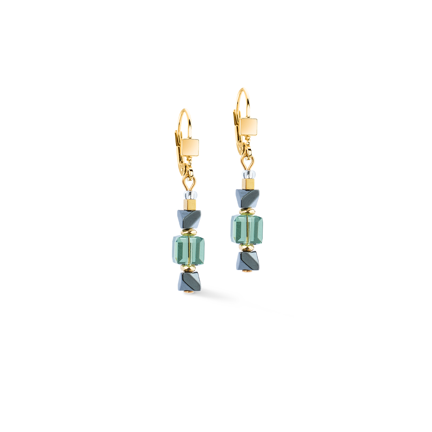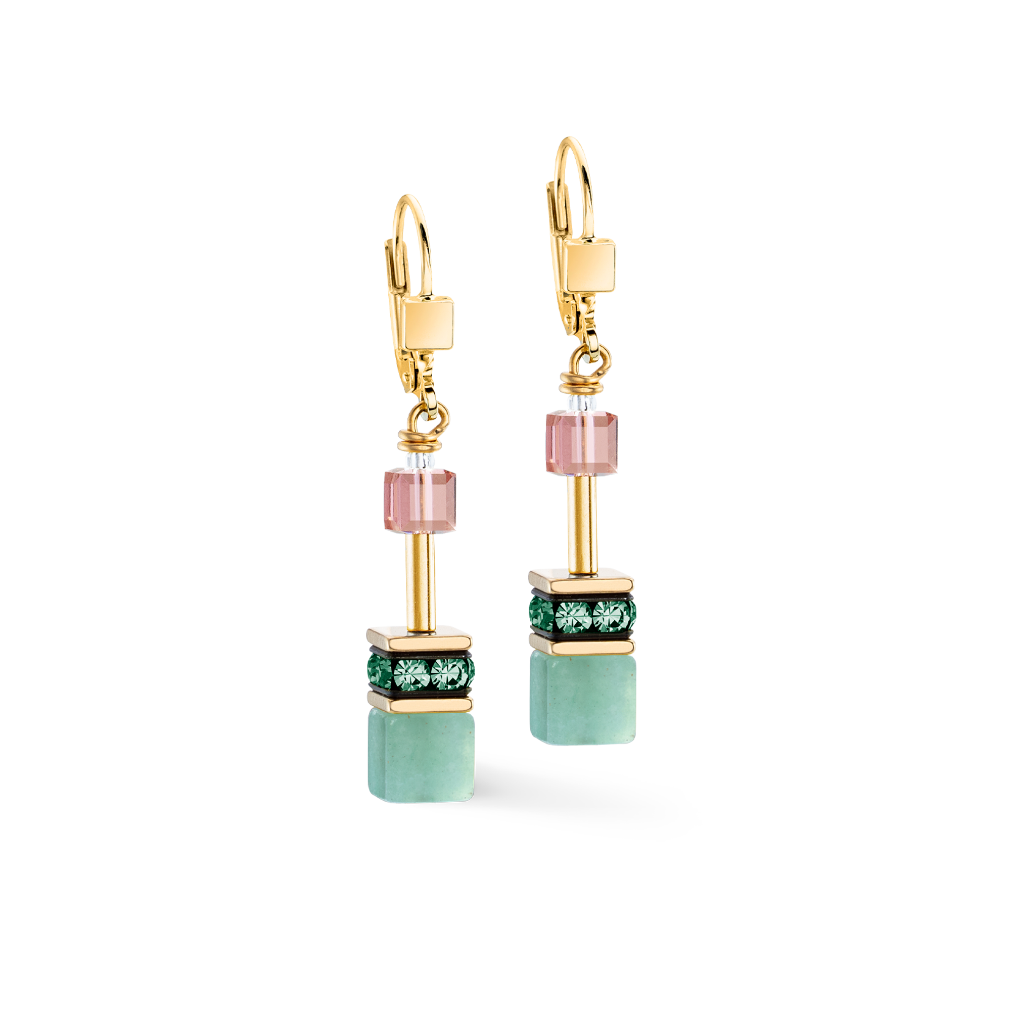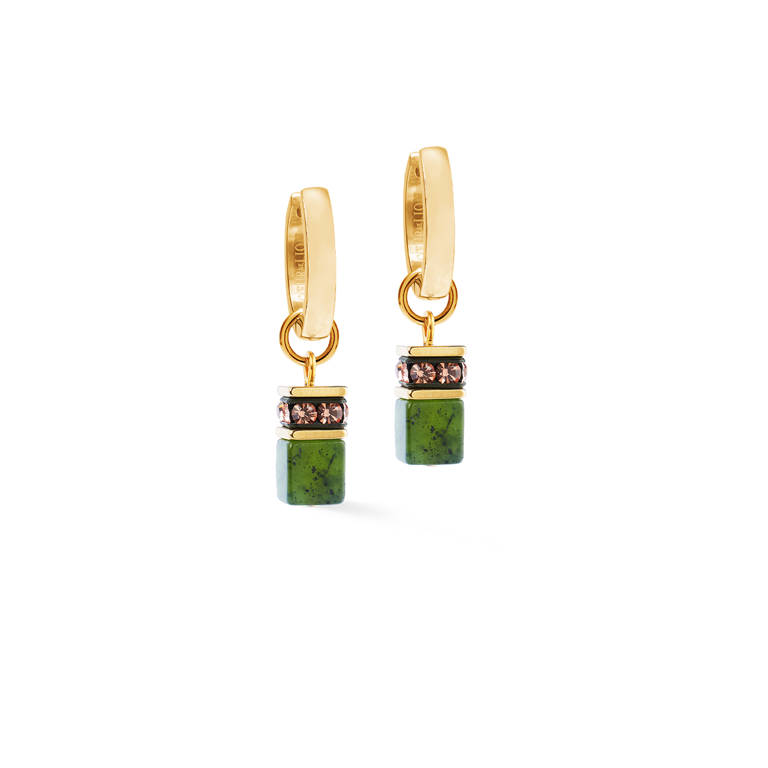 Whether delicate earrings with a green stone, the agate, feminine rose quartz earrings or expressive earrings with a blue stone, a sodalite – each of our precious stones sparkles in its very own shade. Those who prefer the monochrome look will find what they are looking for in our GeoCUBE® tone-on-tone category. Here, precious stones and crystals from a similar colour spectrum are combined with each other. Things are more colourful in the multicoloured GeoCUBE® category. Here you will find colourful creations whose nuances have been skilfully and stylishly matched by our designers.