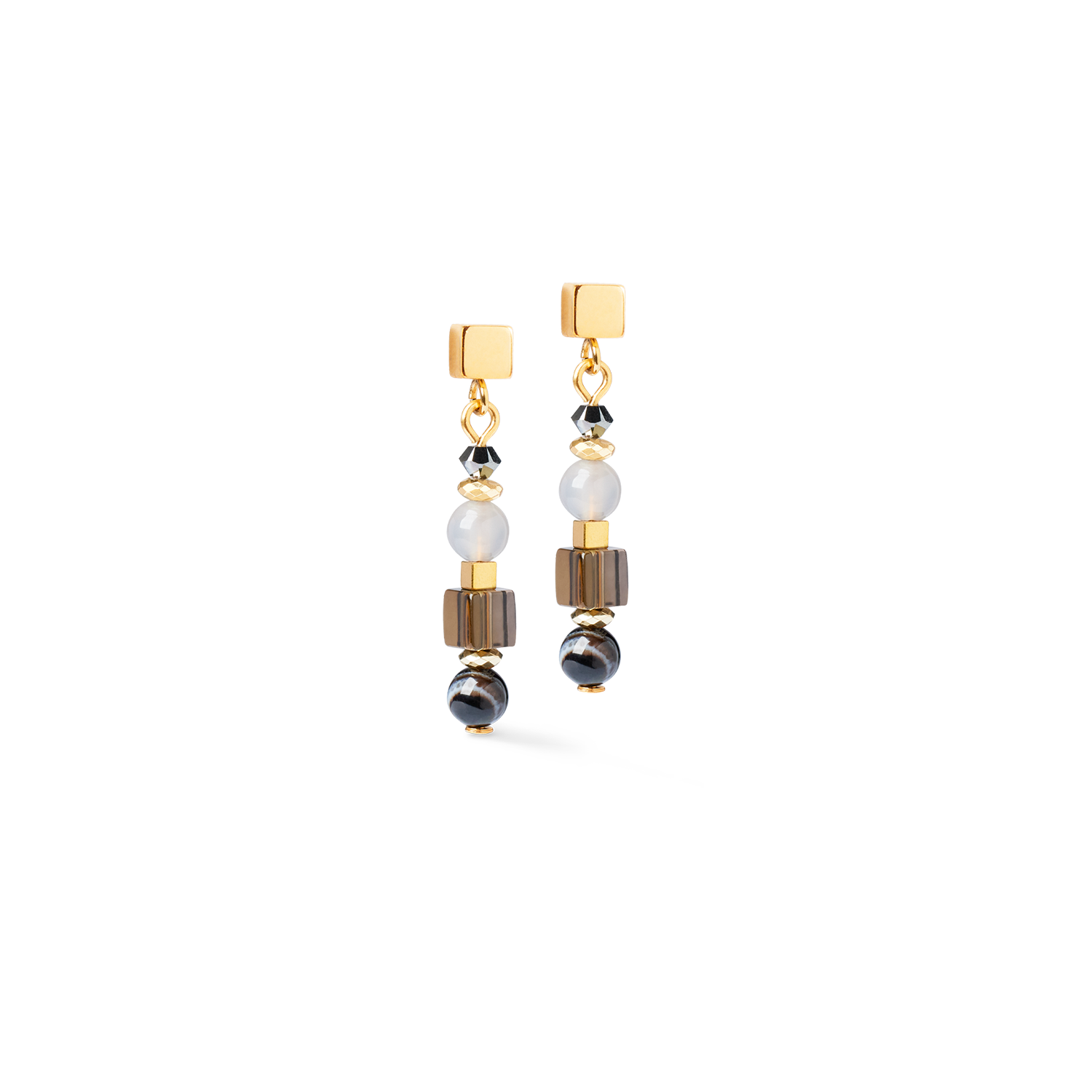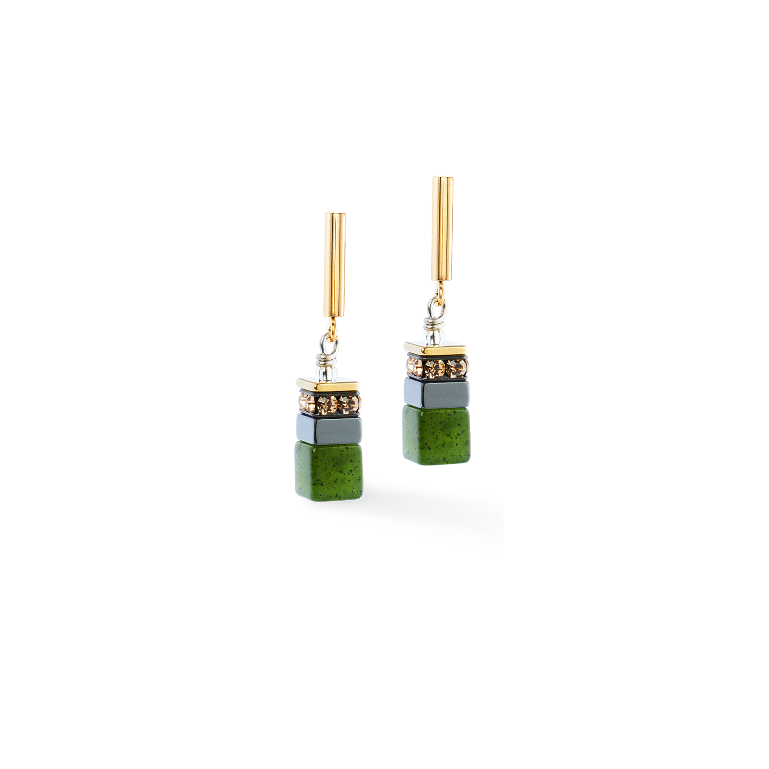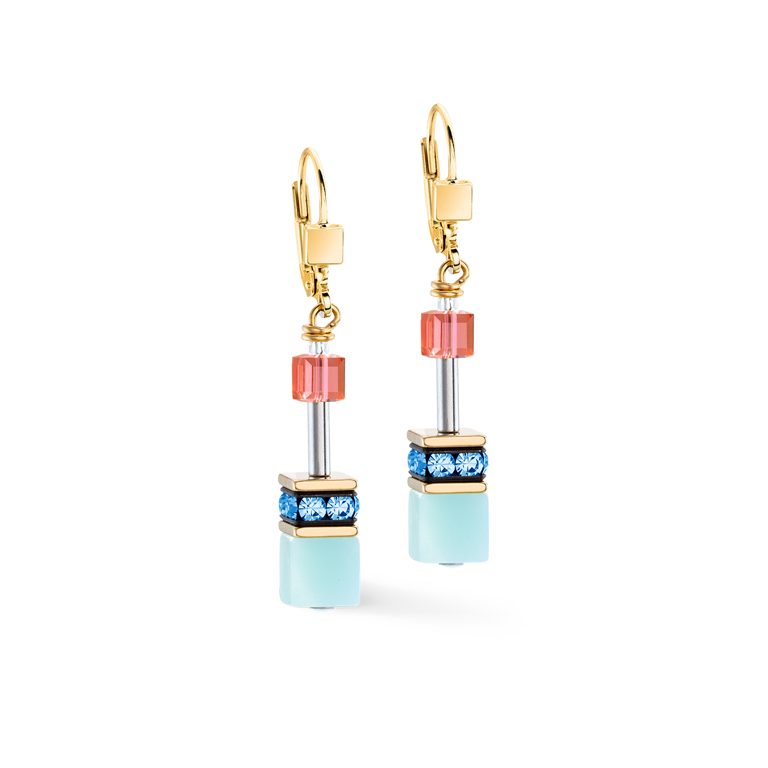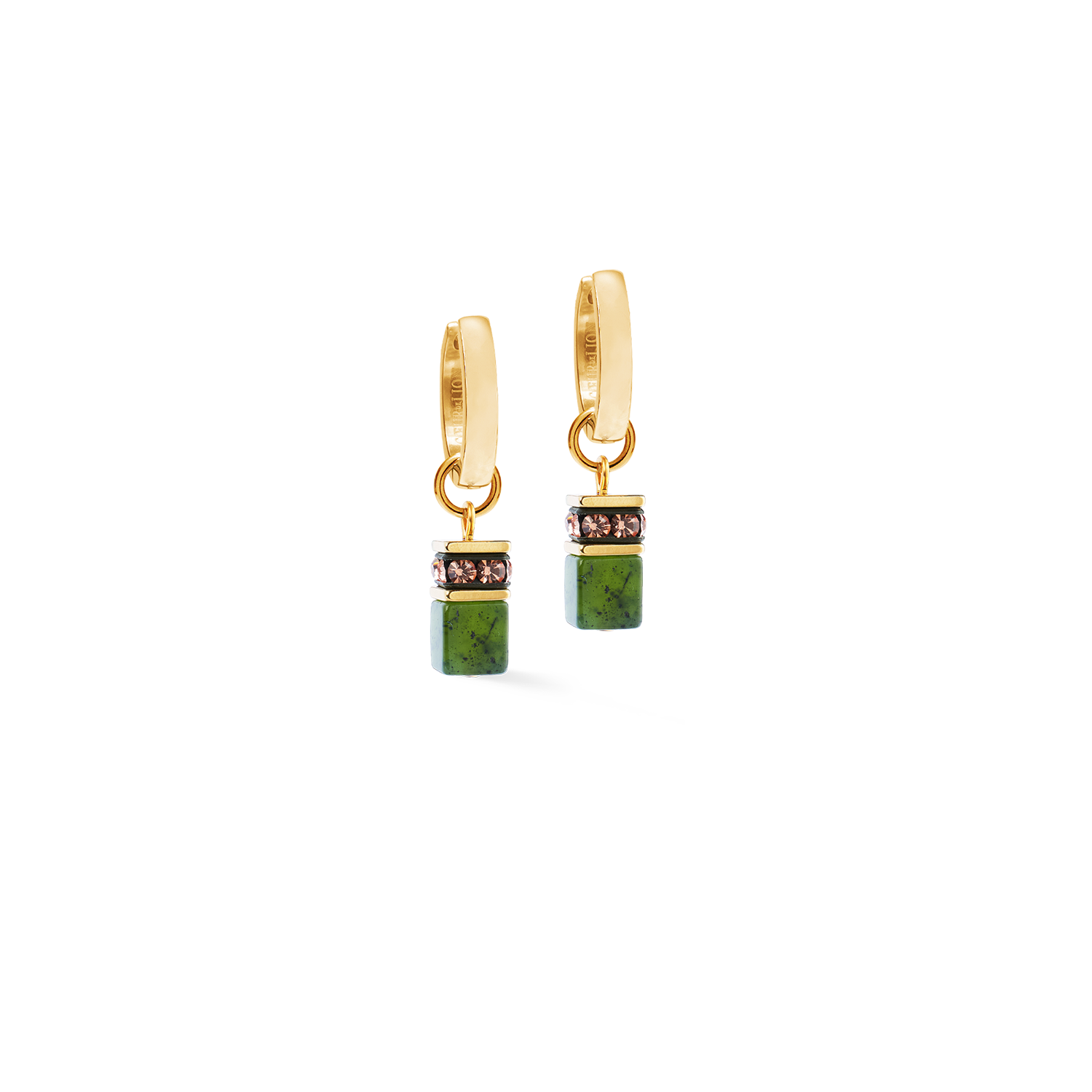 Whether delicate earrings with a green stone, the agate, feminine rose quartz earrings or expressive earrings with a blue stone, a sodalite – each of our precious stones sparkles in its very own shade. Those who prefer the monochrome look will find what they are looking for in our GeoCUBE® tone-on-tone category. Here, precious stones and crystals from a similar colour spectrum are combined with each other. Things are more colourful in the multicoloured GeoCUBE® category. Here you will find colourful creations whose nuances have been skilfully and stylishly matched by our designers.