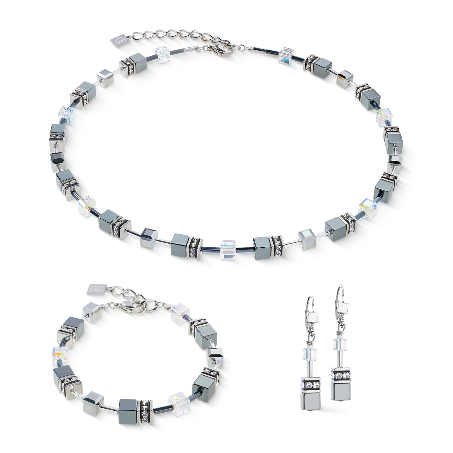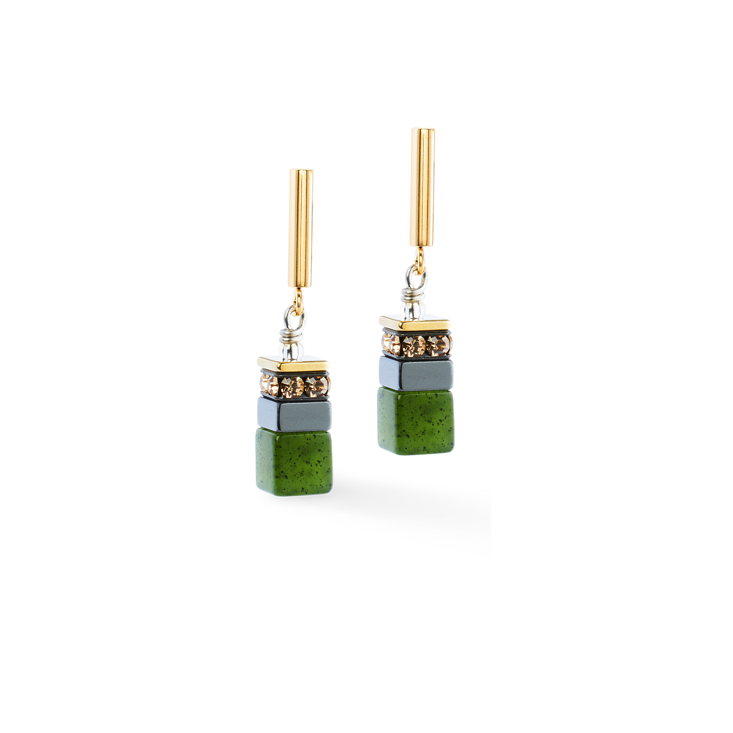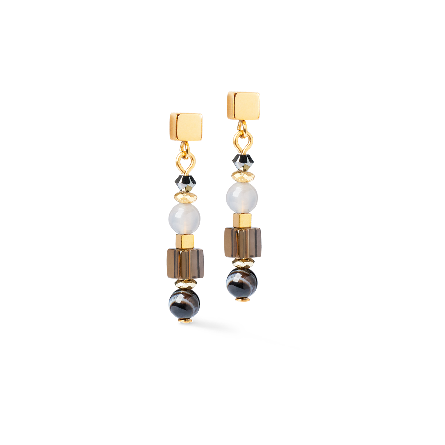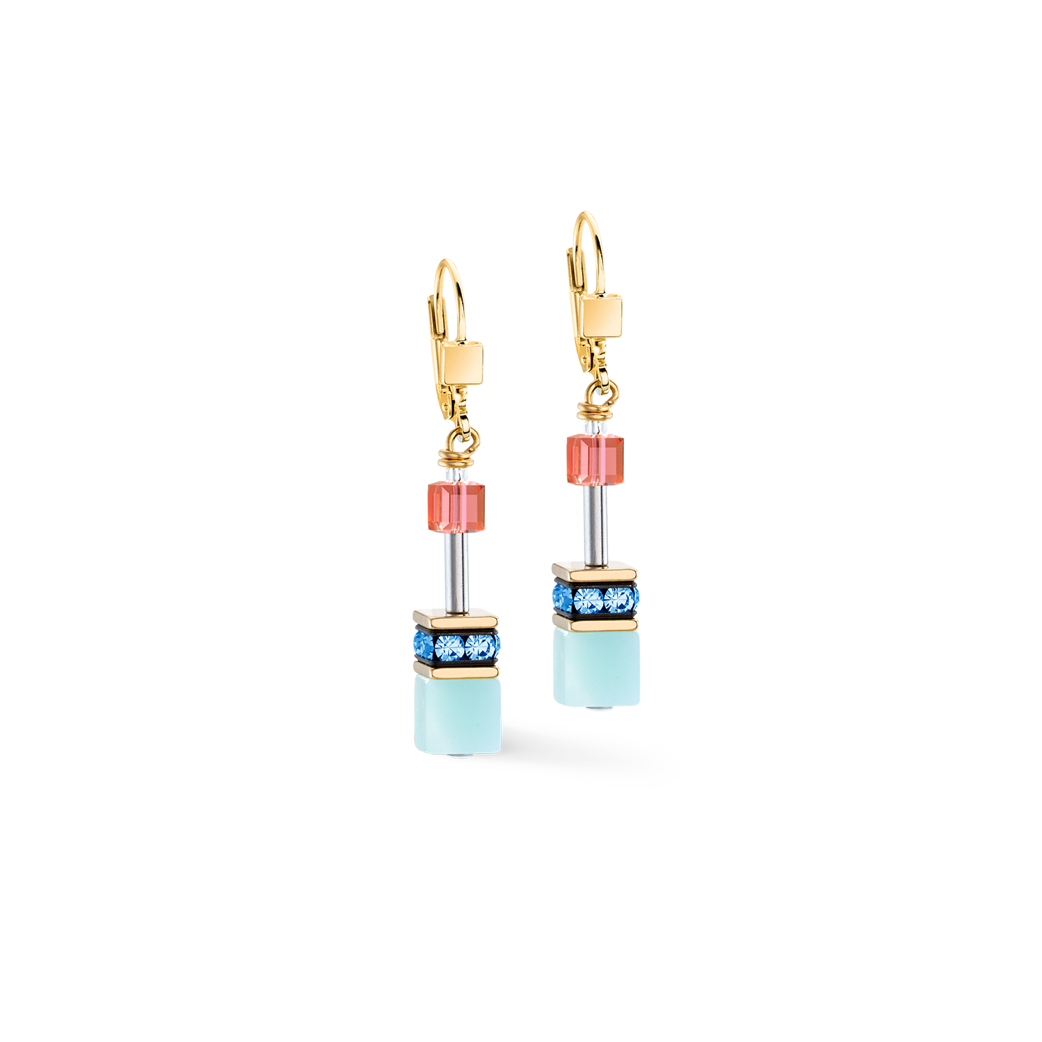 Whether delicate earrings with a green stone, the agate, feminine rose quartz earrings or expressive earrings with a blue stone, a sodalite – each of our precious stones sparkles in its very own shade. Those who prefer the monochrome look will find what they are looking for in our GeoCUBE® tone-on-tone category. Here, precious stones and crystals from a similar colour spectrum are combined with each other. Things are more colourful in the multicoloured GeoCUBE® category. Here you will find colourful creations whose nuances have been skilfully and stylishly matched by our designers.