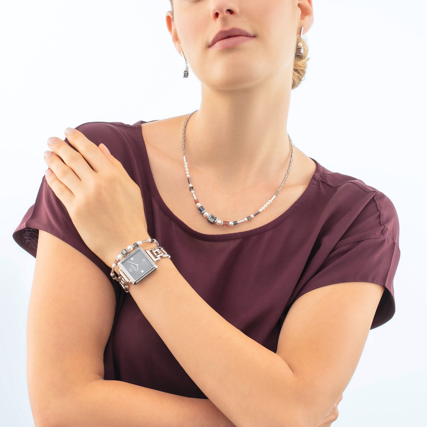The earthy look of the Precious Fusion link chain in brown-silver is unmistakable. The smoky quartz cubes create a subtle, grounding presence, which is further enhanced by the metallic shimmer...