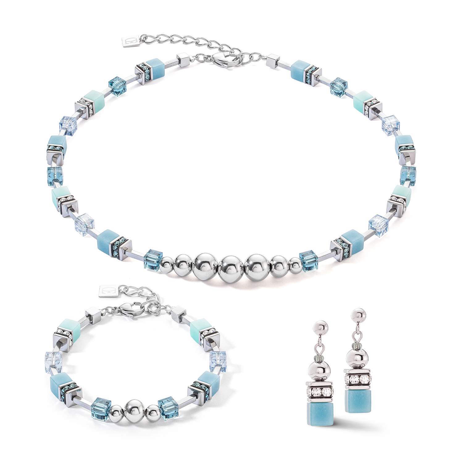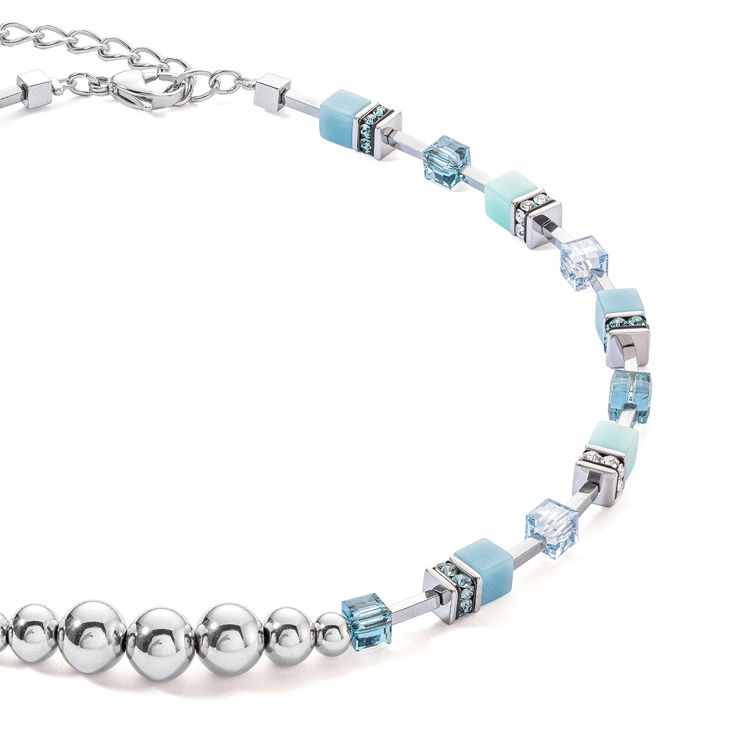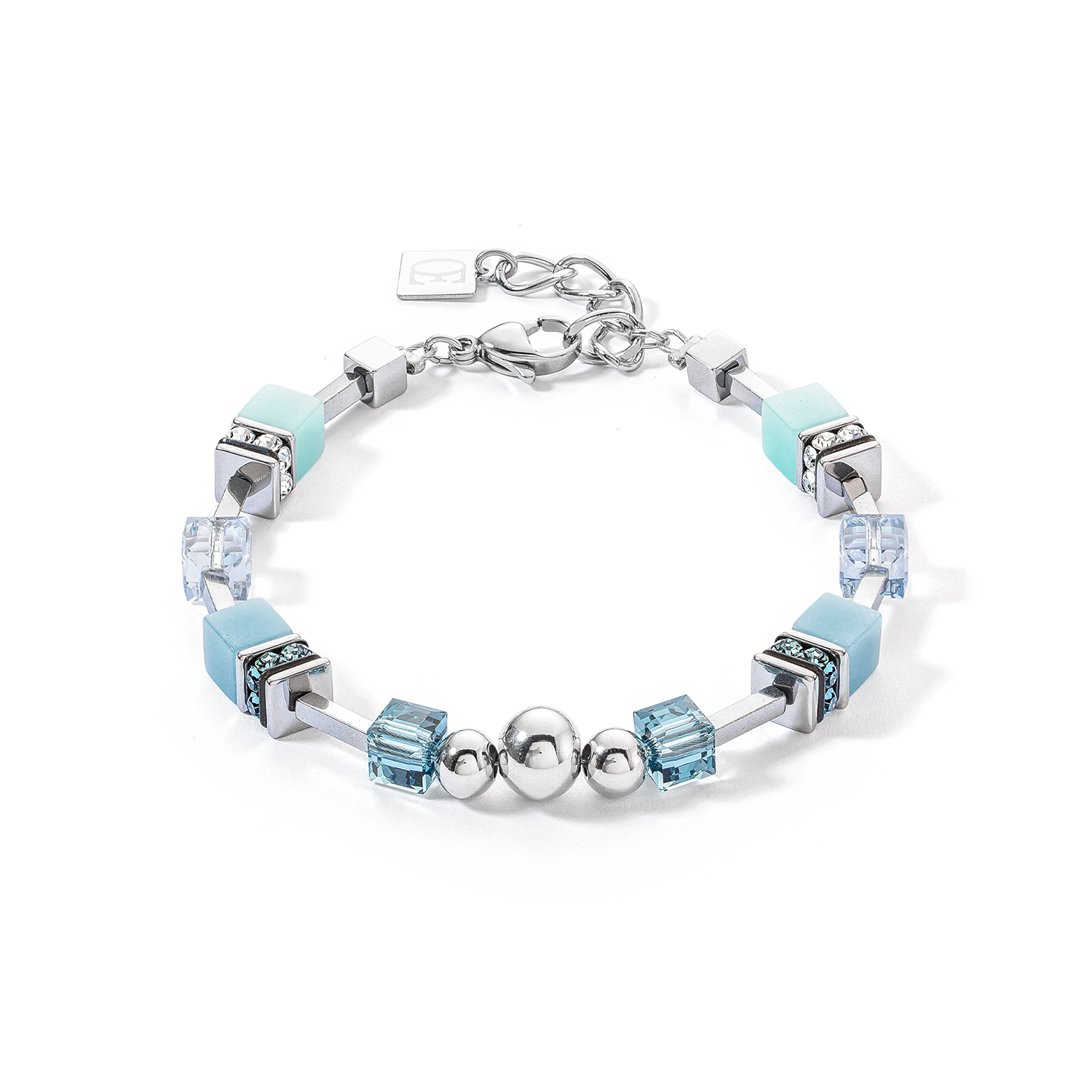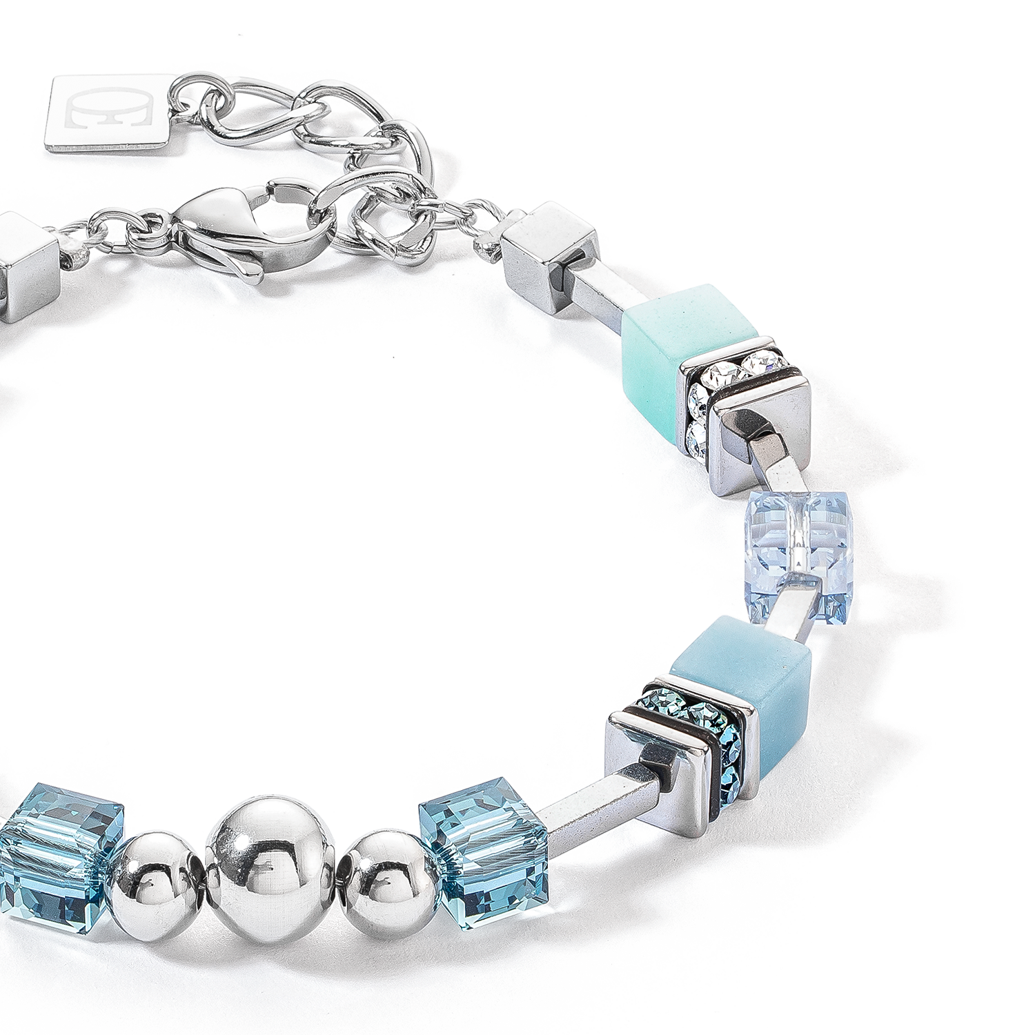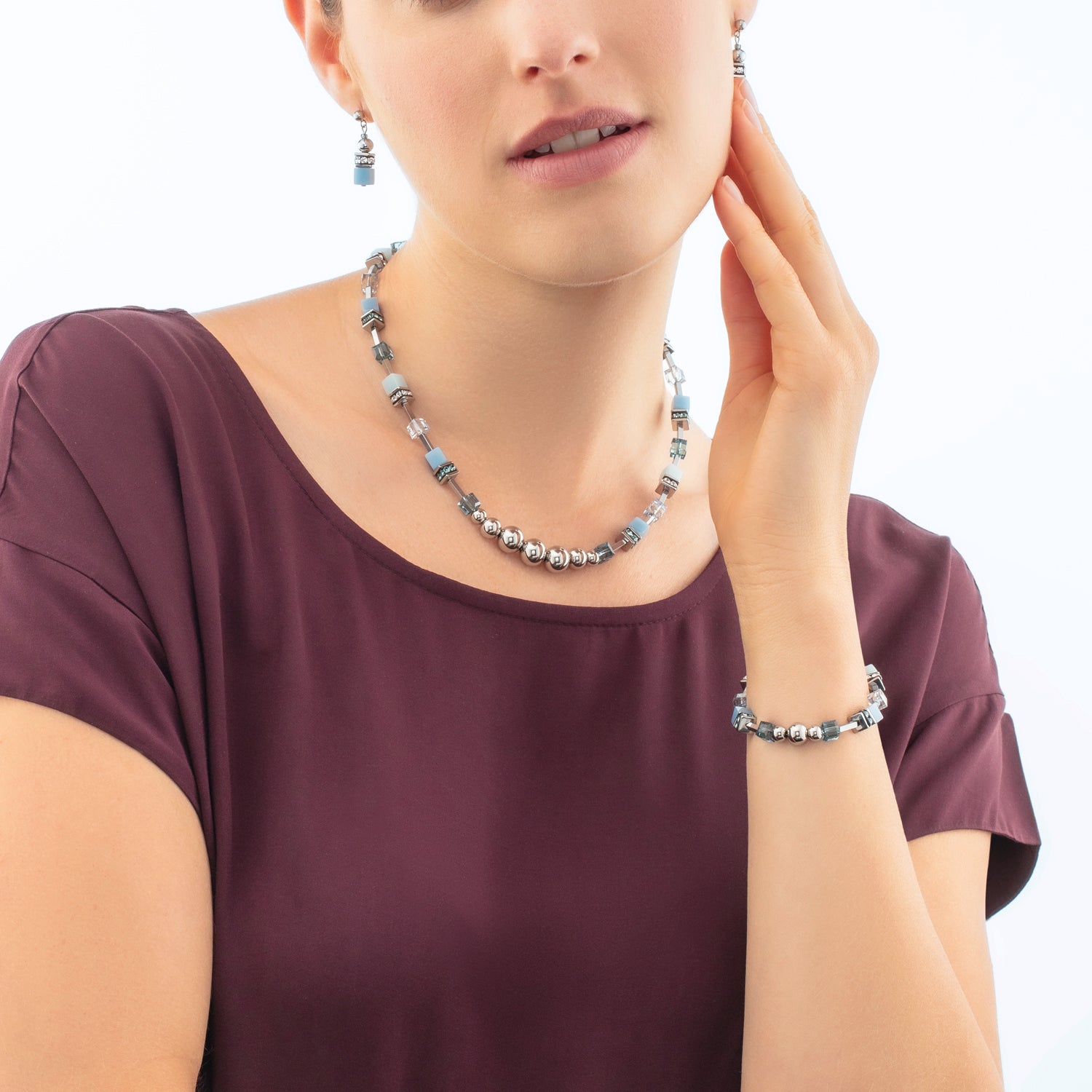 Dive into the depths of elegance with the Precious Fusion link bracelet in blue-silver. This piece of jewellery combines the rich, cerebral hues of sodalite cubes with the innovative shine...