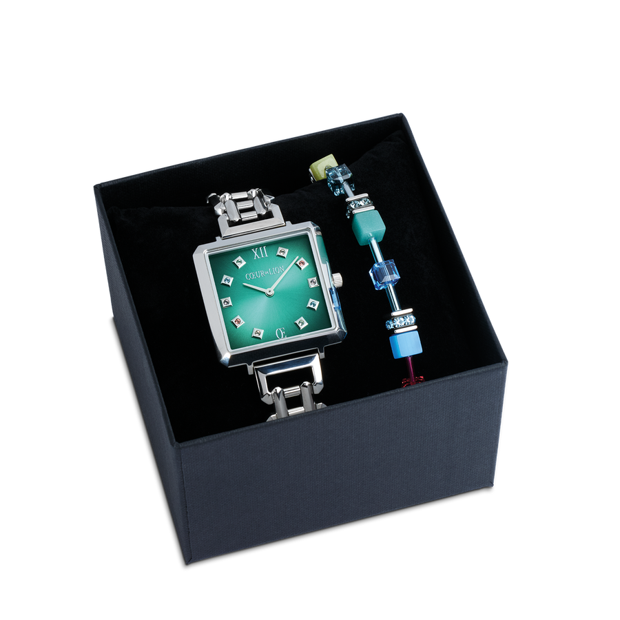 Gift Set Watch Iconic Cube Turquoise Glaze silver & GeoCUBE® Iconic Bracelet Magic silver
