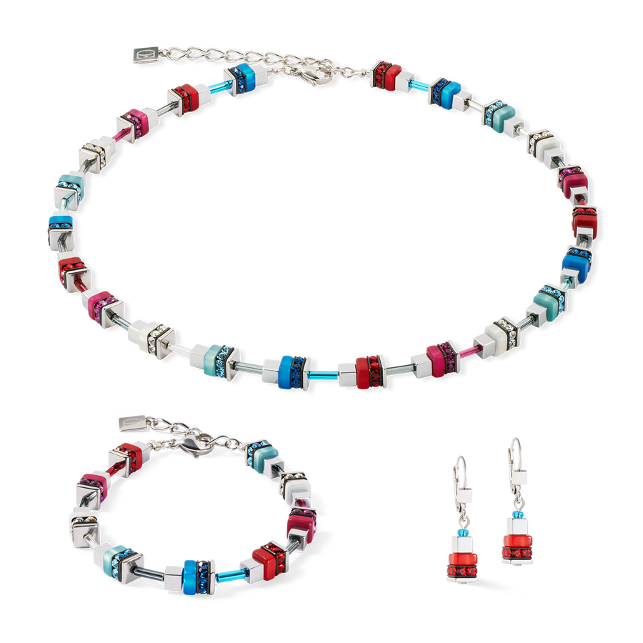 Textured, intense in colour, an eye-catcher - the Modern Future Cube blue-red earrings play with the contrast of deep blue and bright red. Polaris, sparkling Swarovski® crystals and elegant rhinestone details give these earrings a modern, avant-garde look.