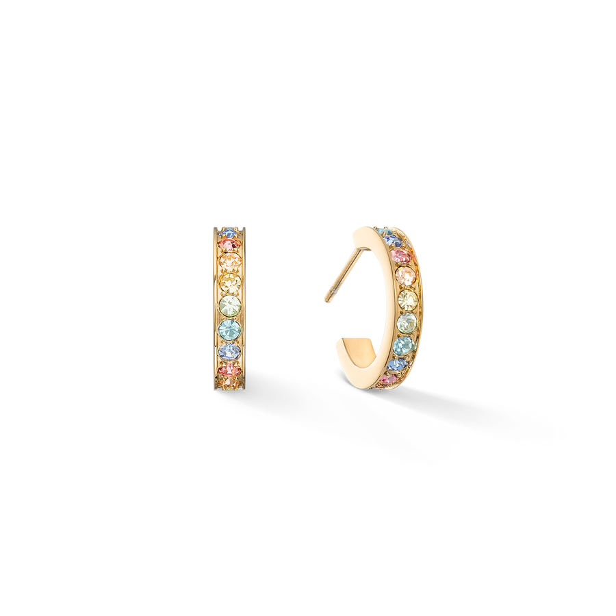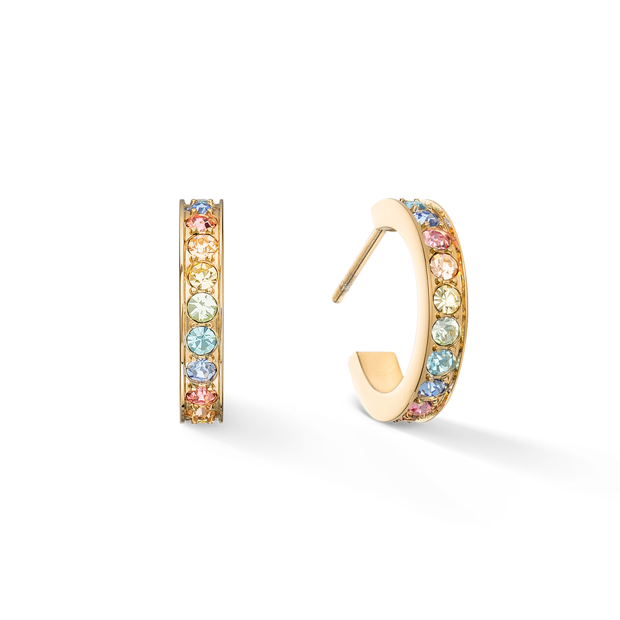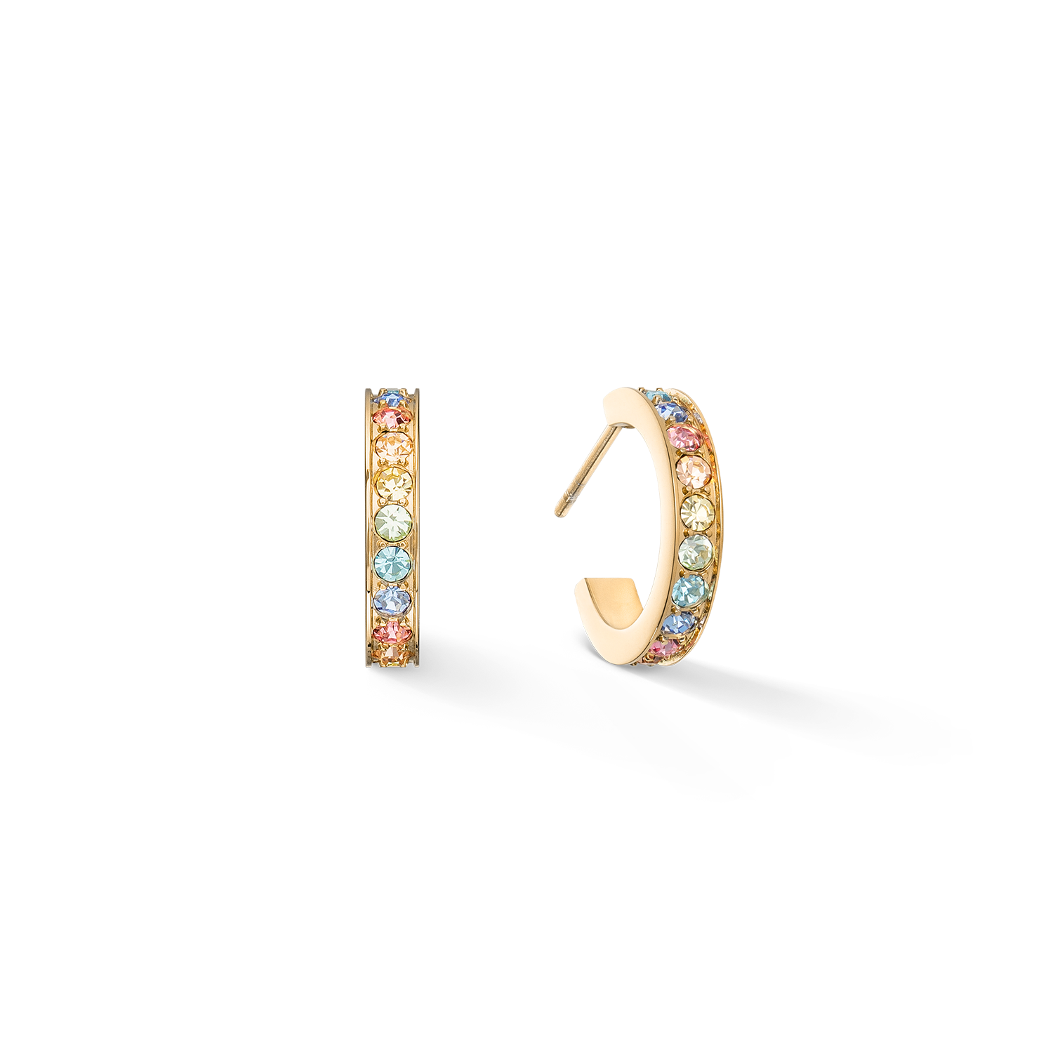 Hoop earrings 15 stainless steel & crystals gold multicolour pastel
