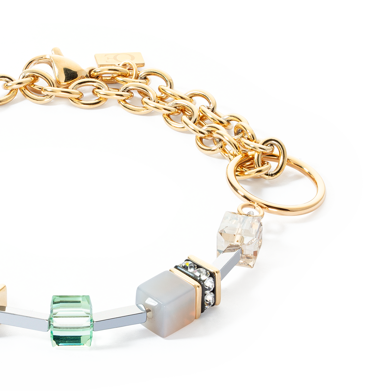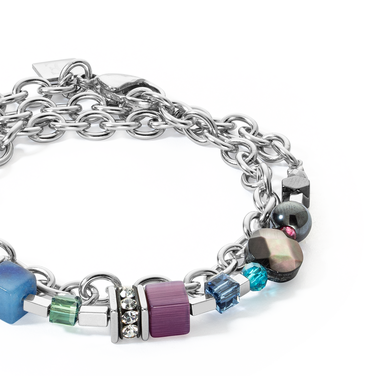 The first ‘rule’ here is: whatever suits your taste. We particularly like it when several delicate bracelets – such as a pearl bracelet and a bangle – are combined with more extravagant bracelets. This could be one of our bracelets from the GeoCUBE® collection with genuine precious stones or a modern bracelet made of leather and stainless steel. Layering looks harmonious if you choose pieces of jewellery from one colour family – in other words, if the crystals, precious stones or pearls have similar colours and the base of the bracelets also matches. Of course, layering colourful bracelets is also possible. This is how you create a colourful and gorgeous statement on your wrist.