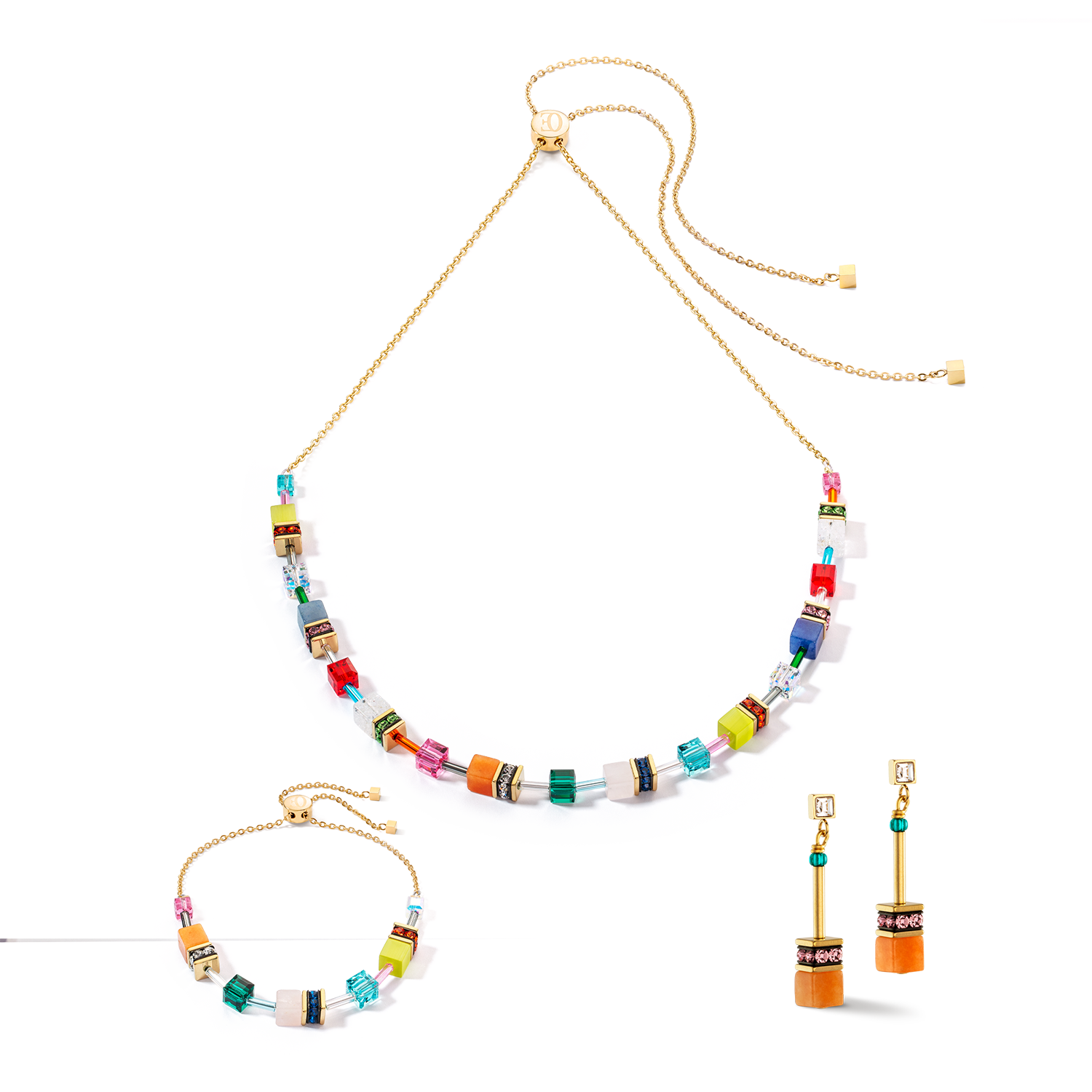 Exude refinement with this elegant GeoCUBE® creation in gold, lovingly handcrafted using pastel-coloured gemstones like pink aventurine, sensual rose quartz or sparkling crystals.