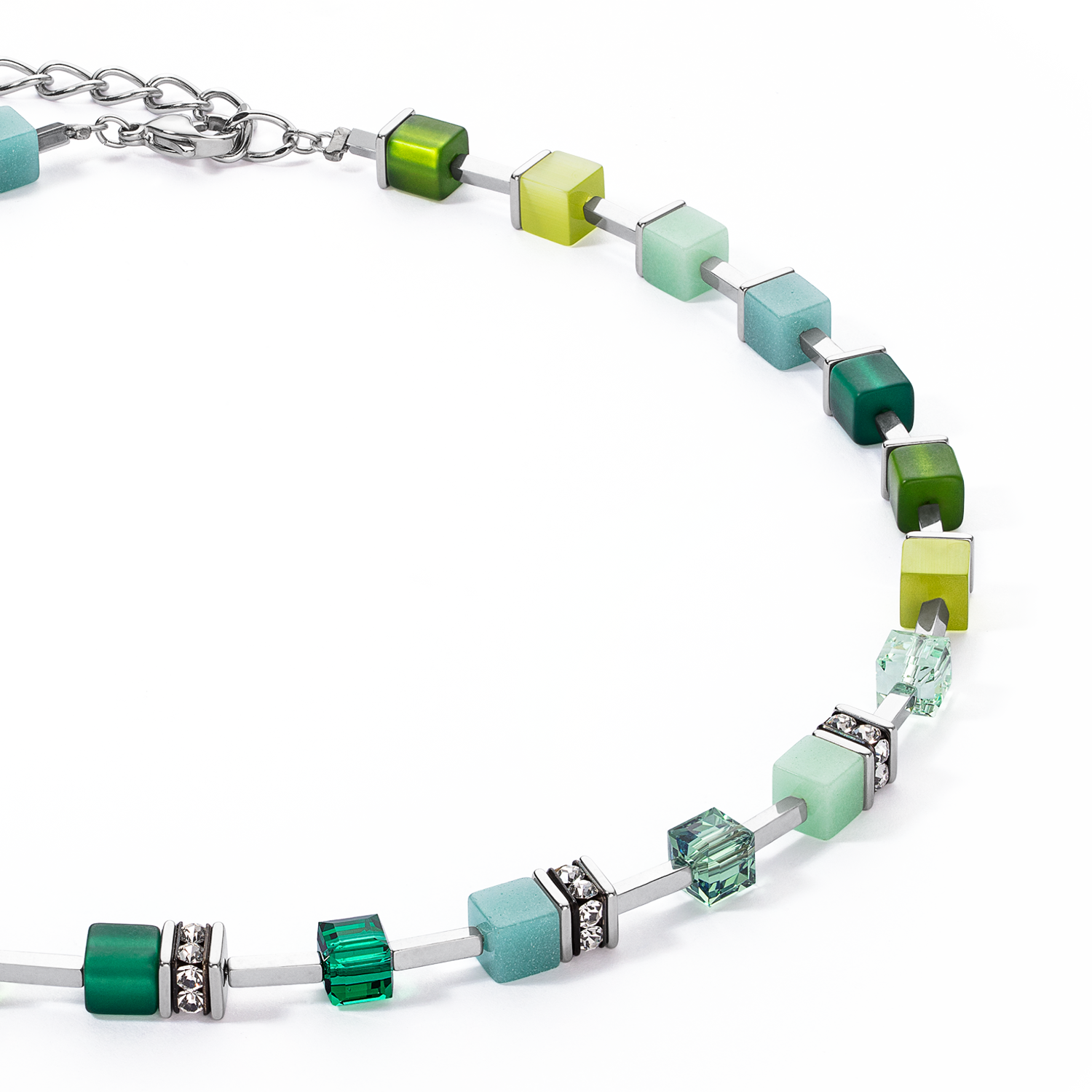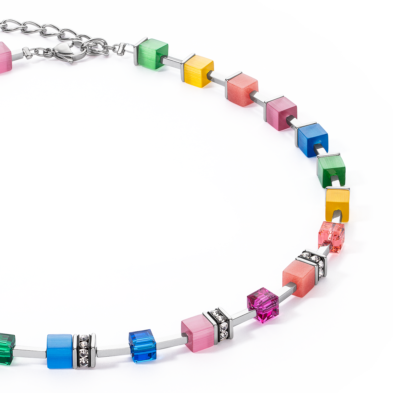 Add Mother Nature’s subtle colours to your outfit with the GEOCUBE® Iconic Precious necklace in gentle multicoloured shades. Precious stones including agate, pink aventurine, amazonite and landscape jasper come together...