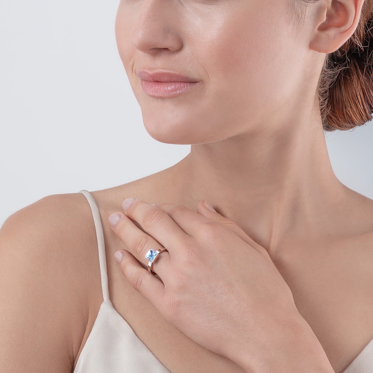 The stunning Brilliant Square ring in fresh pale blue and silver adds a splash of colour, whatever the occasion. Complete the look with other rings from the same range or...