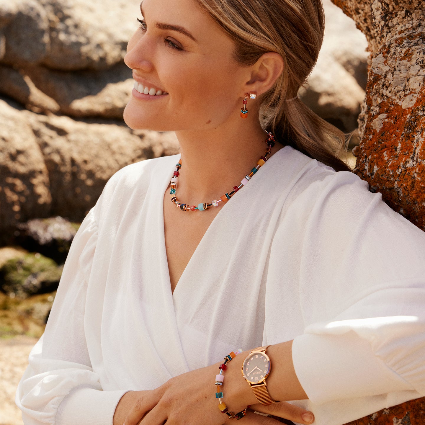 For female conquerors. A high-quality casing and Milanese strap made from rose gold stainless steel are complemented by a sandblasted-effect dial in stunning Mocha, finished with sparkling Swarovski® crystals for...