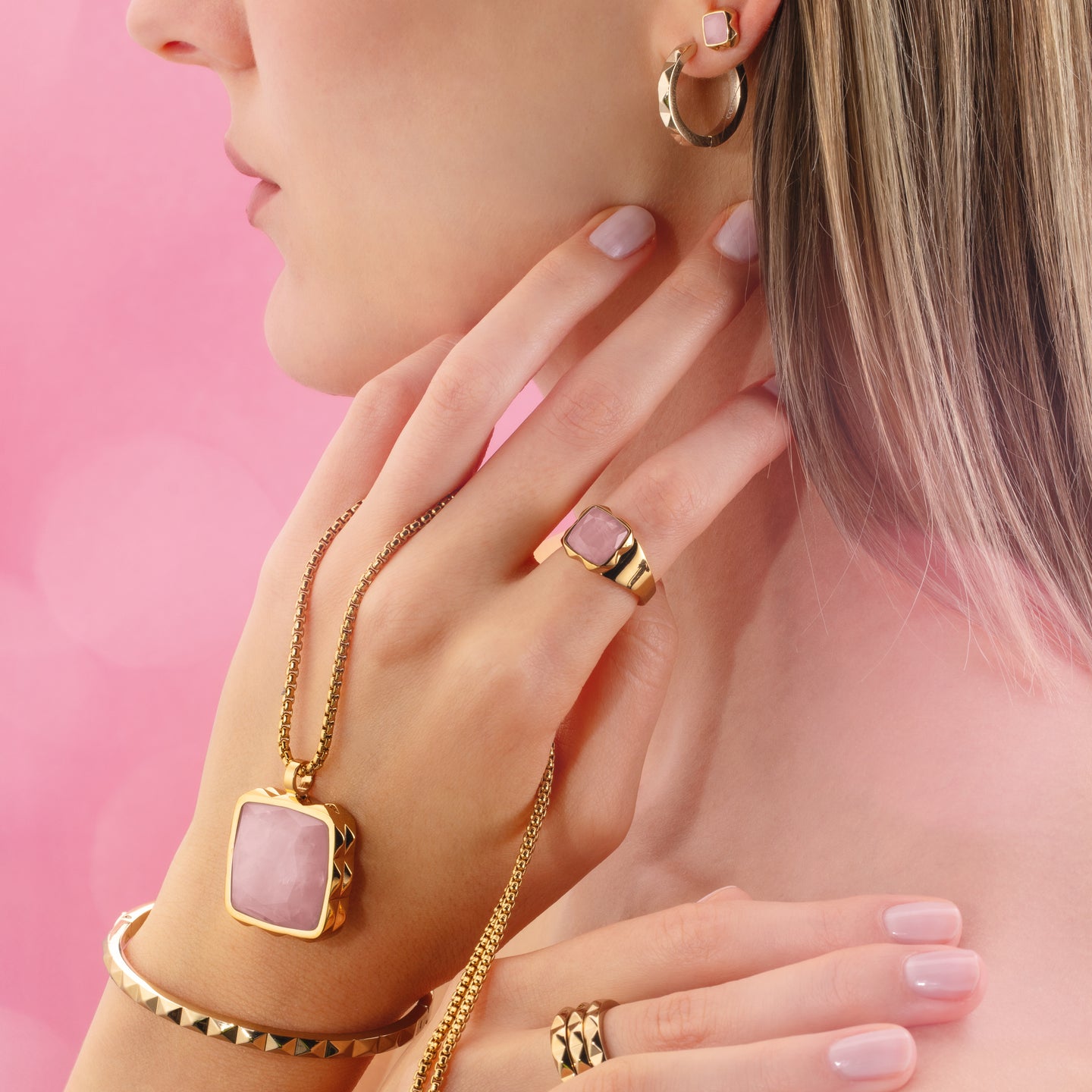Immerse yourself in the fascinating world of our Essentials collection and complete your look with the matching rings for our stunning genuine stone necklace - Amulet Spikes Square Rose Quartz...