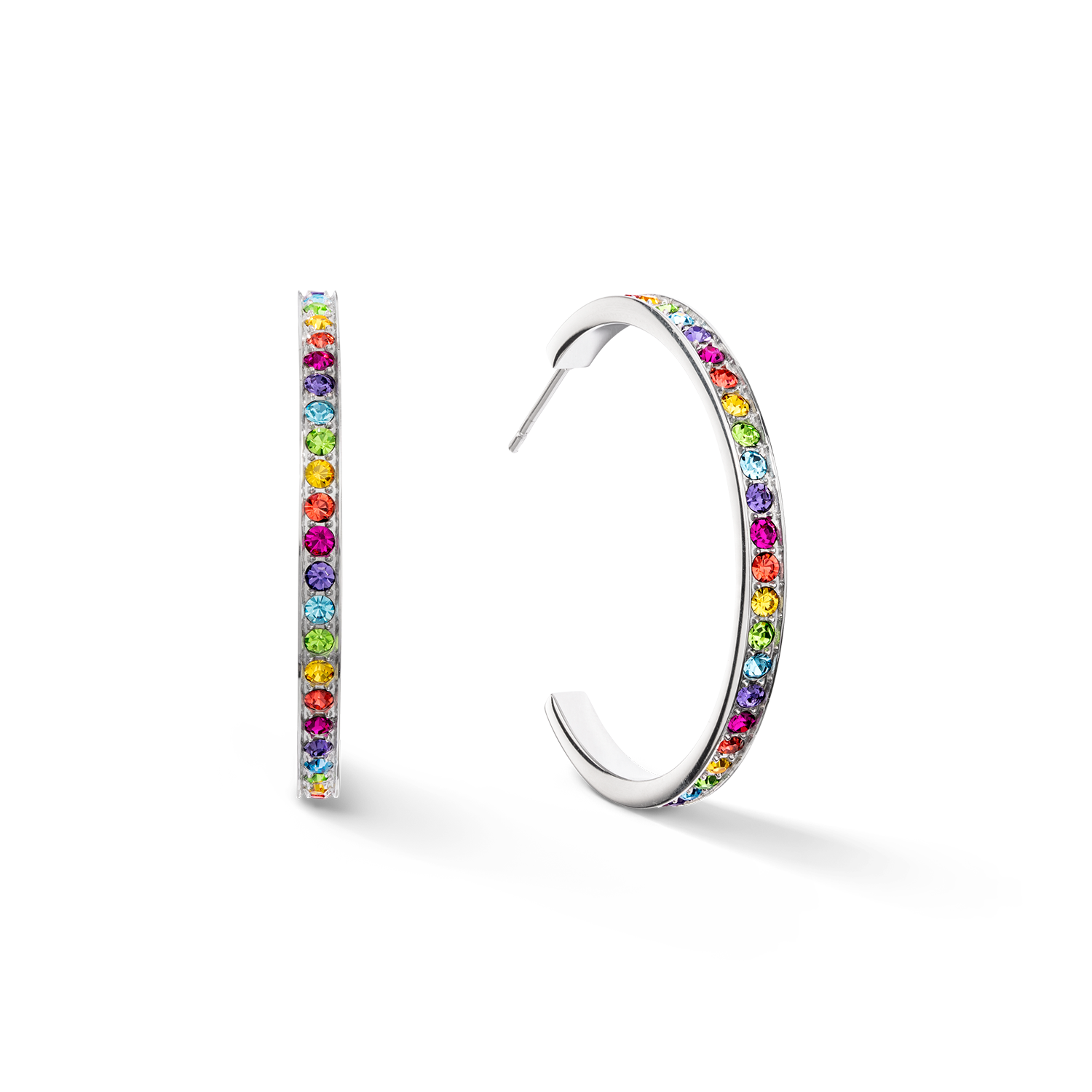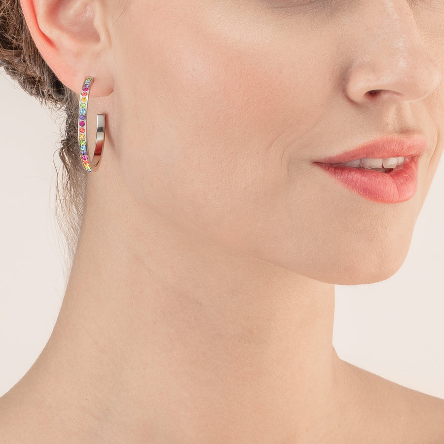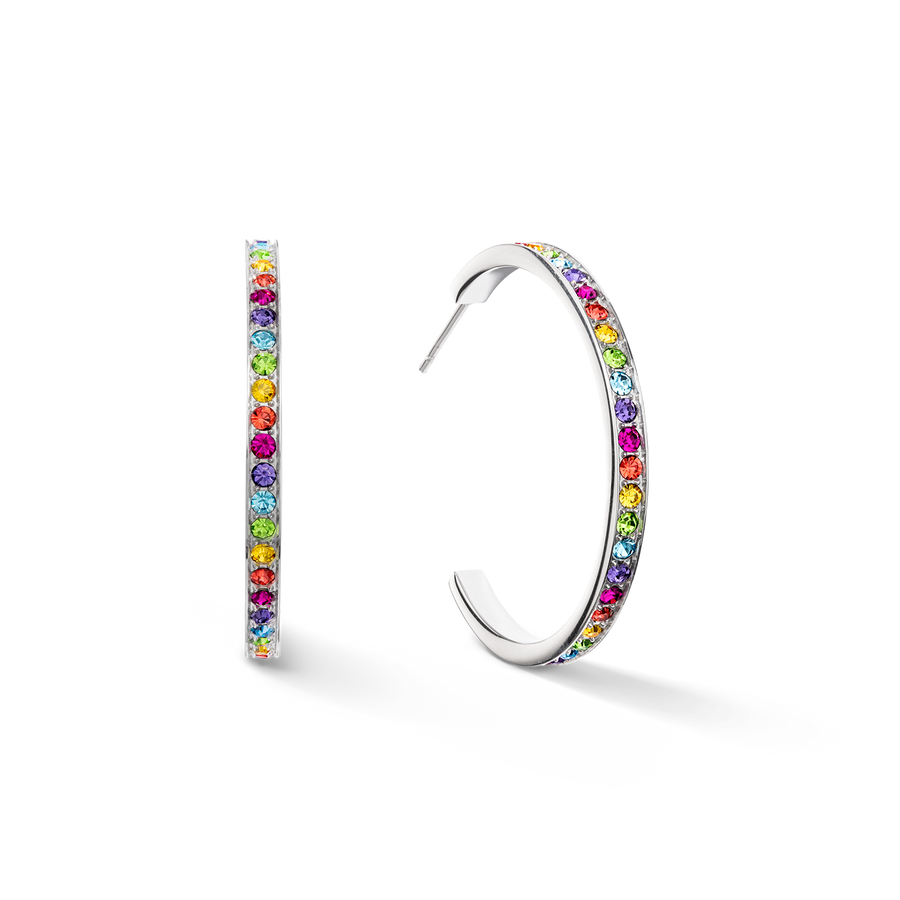 Hoop earrings are more popular than ever – probably because they make the perfect addition to any look. A timeless design, set with colourful crystals. The ideal size and classic stud back make them very comfortable to wear.