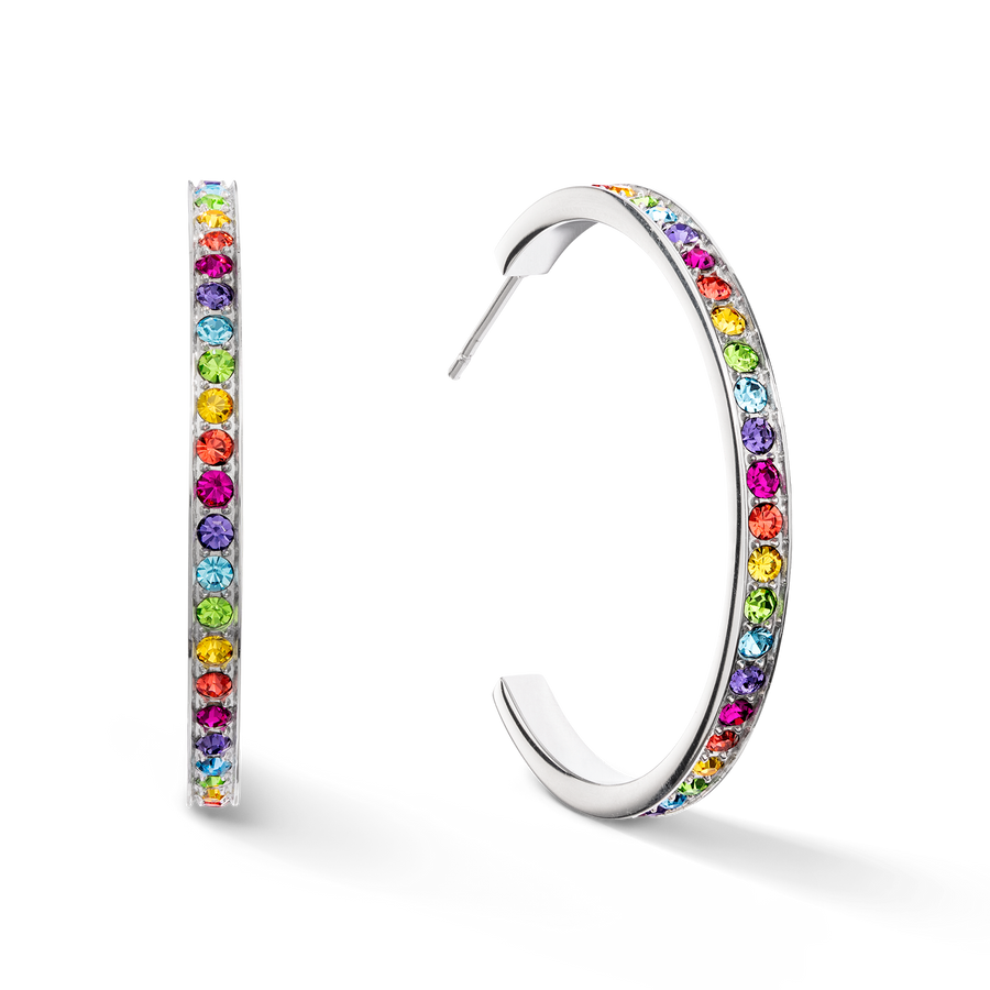 Earrings creole 35 stainless steel & crystals silver multicolor