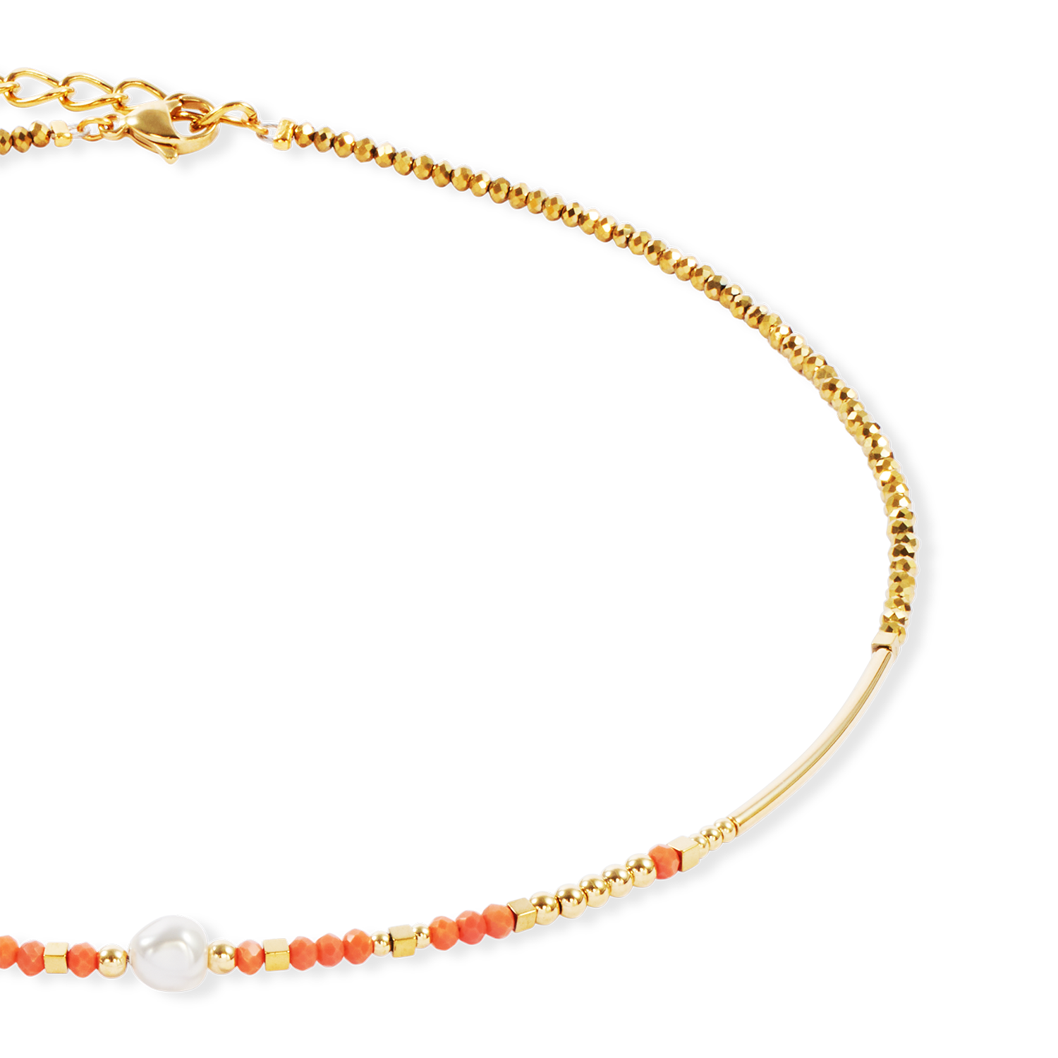 Summer for your wrist - the Sunset Pearl gold-coral bracelet combines warm coral tones with shimmering Crystal Pearls by Swarovski® and golden highlights made of stainless steel in gold. A...