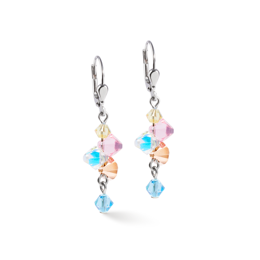 Soft colours, strong expression - the Dancing Crystals silver-pastel earrings play with light and movement. The pastel-coloured, rhombus-cut Swarovski crystals create a shimmering play of colour with every movement, which looks particularly modern in combination with shiny stainless steel. The perfect balance between lightness and sophistication.