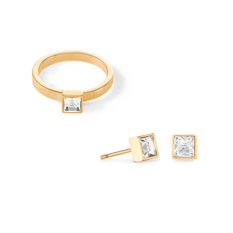 The stunning Brilliant Square earrings in gold and crystal add a touch of sparkle, whatever the occasion. Complete the look with the matching Brilliant Square rings.