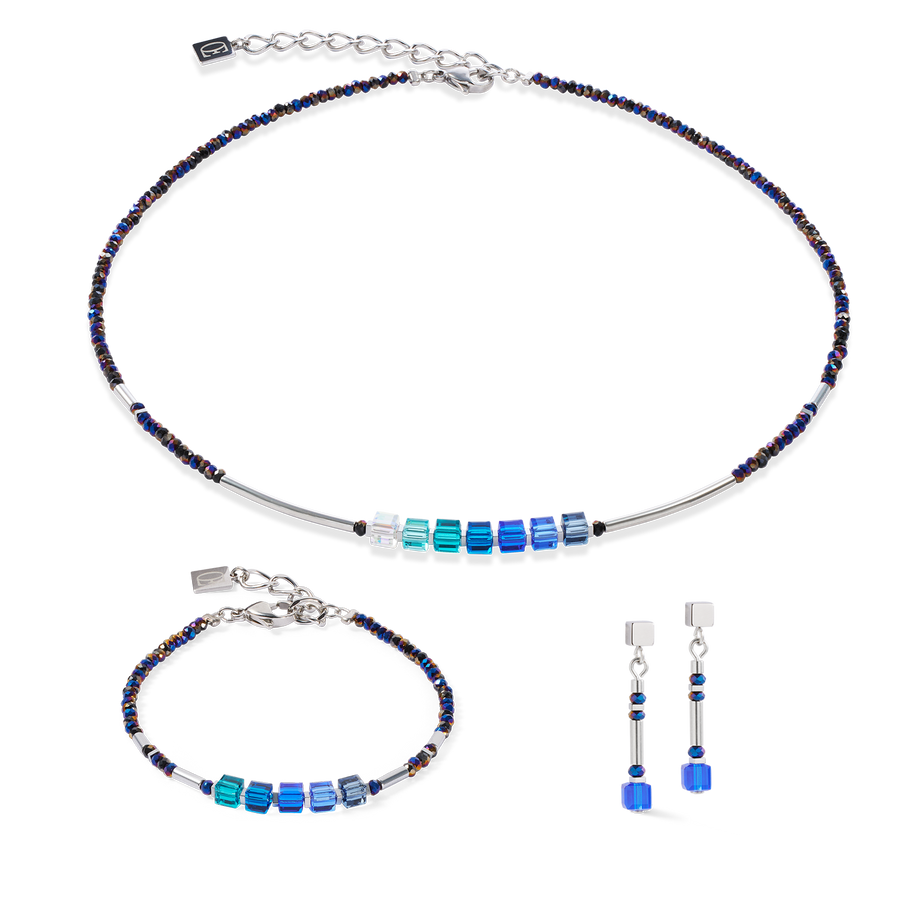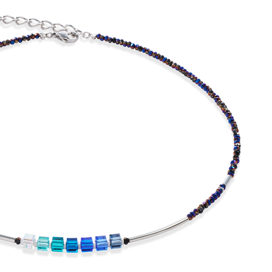 Minimalist, modern, with gentle colour gradients - the Cube Story Minimalistic Sparkling necklace blue uses Swarovski® crystal cubes that create a fascinating ombre effect in shades of blue. From light sky blue to deep ocean blue, the faceted crystals reflect the light with every movement. Fine stainless steel elements emphasise the clear, stylish design - perfect for a timeless look.