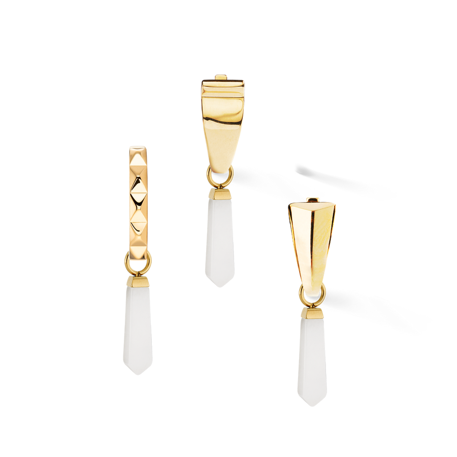 White jade in an angular shape - clear, modern, versatile. This obelisk charm from the EAR ME UP collection brings lightness to ear styling. Mix, change & create your own look.