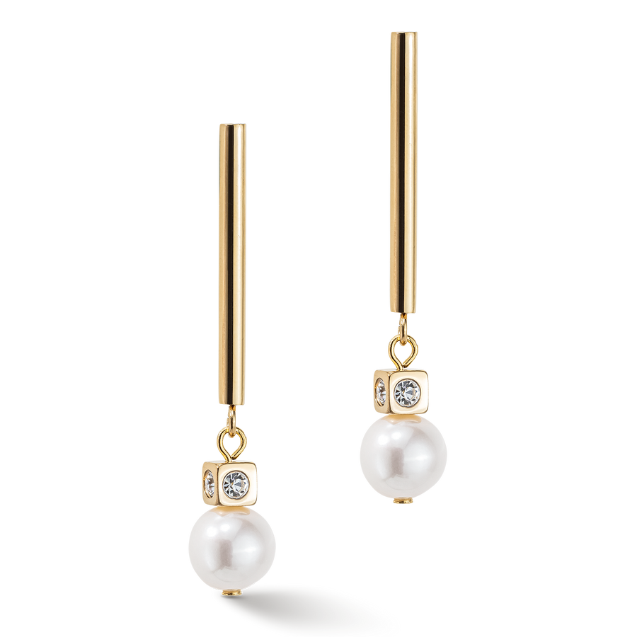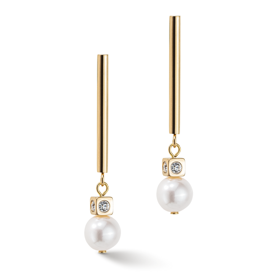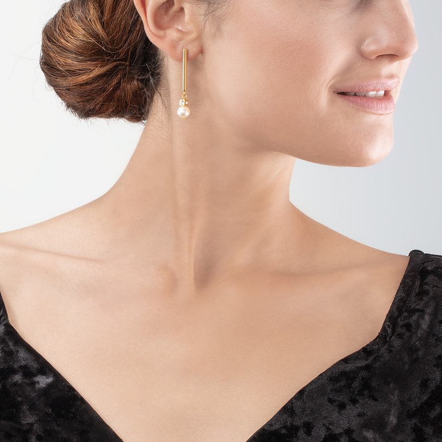 Made from genuine freshwater pearls, shimmering pavé-set crystals and fine gold stainless steel, these classic, elegant earrings are bound to turn heads.