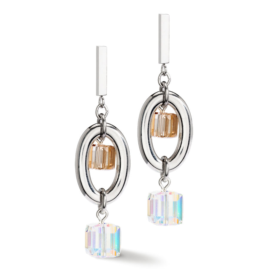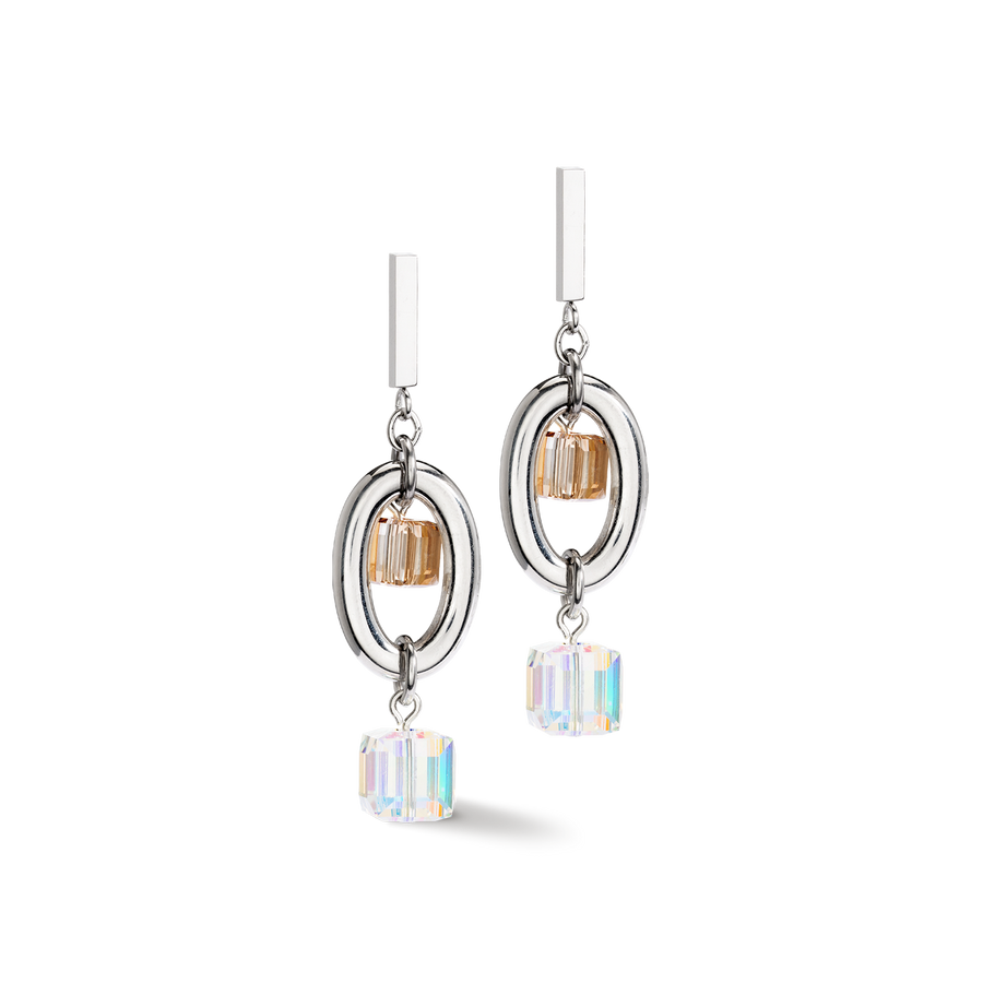 Earrings GeoCUBE® Statement Precious Chunky Chain Multiwear grau-beige