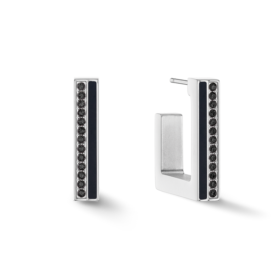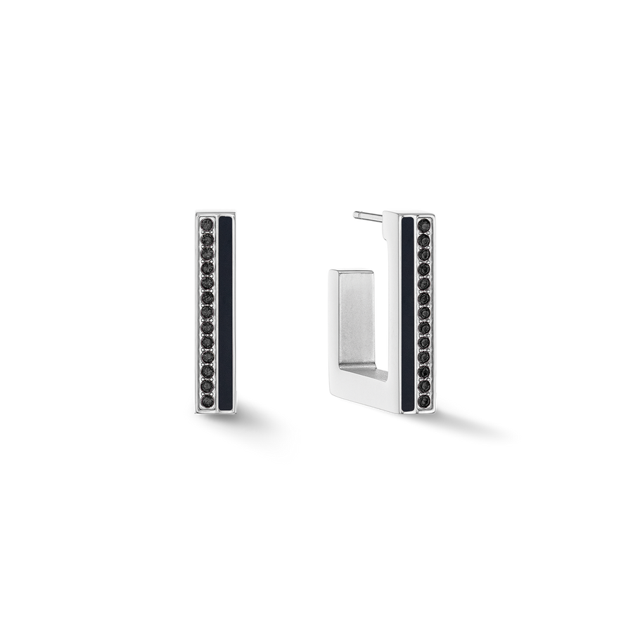Earrings Hoops Square Stripes 20 silver-black