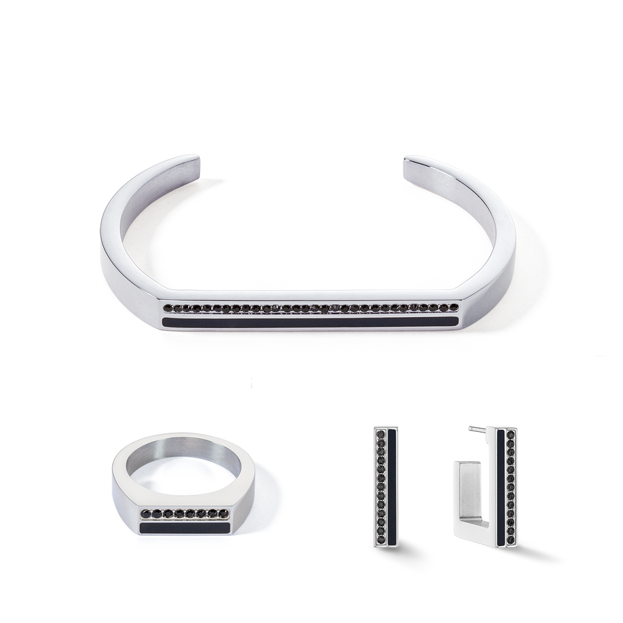 Are you ready for an eye-popping jewellery trend? Our square stainless steel hoops in silver and black are an absolute must for all the fashion-conscious out there. With an exciting combination of vibrant crystals and coordinating coloured stripes, these earrings will give your outfit a fresh, modern look. Matching bangle and rings available.