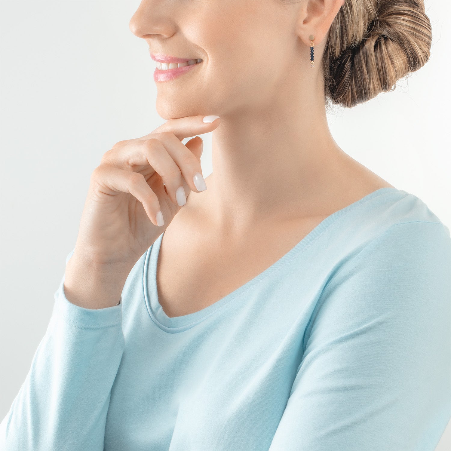 The Little Twinkle earrings in dark blue and gold are a stunning choice. Their simple design makes them suitable for everyday or evening wear, but they are also sparkly enough to add a little glitz and glamour.