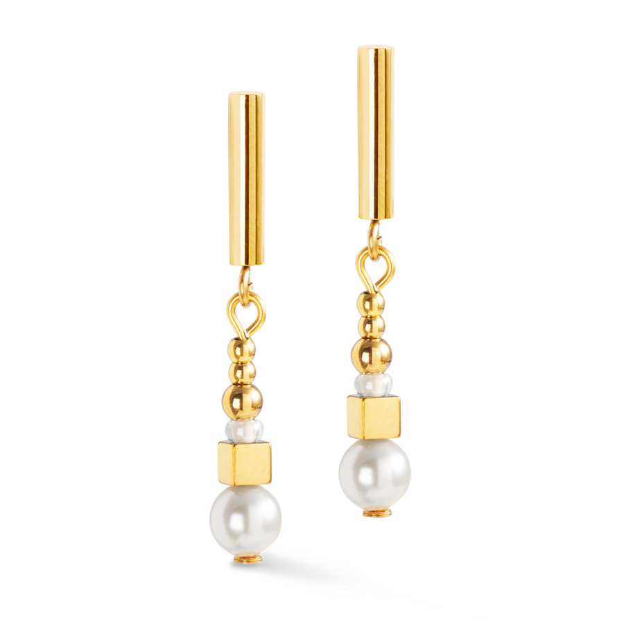 Glittering elegance for every moment - the Shimmering Princess Pearls gold and white earrings rely on the timeless beauty of Crystal Pearls by Swarovski® and fine golden details. Their delicate sparkle creates a sophisticated finish that is perfect for special occasions or as discreet everyday luxury.