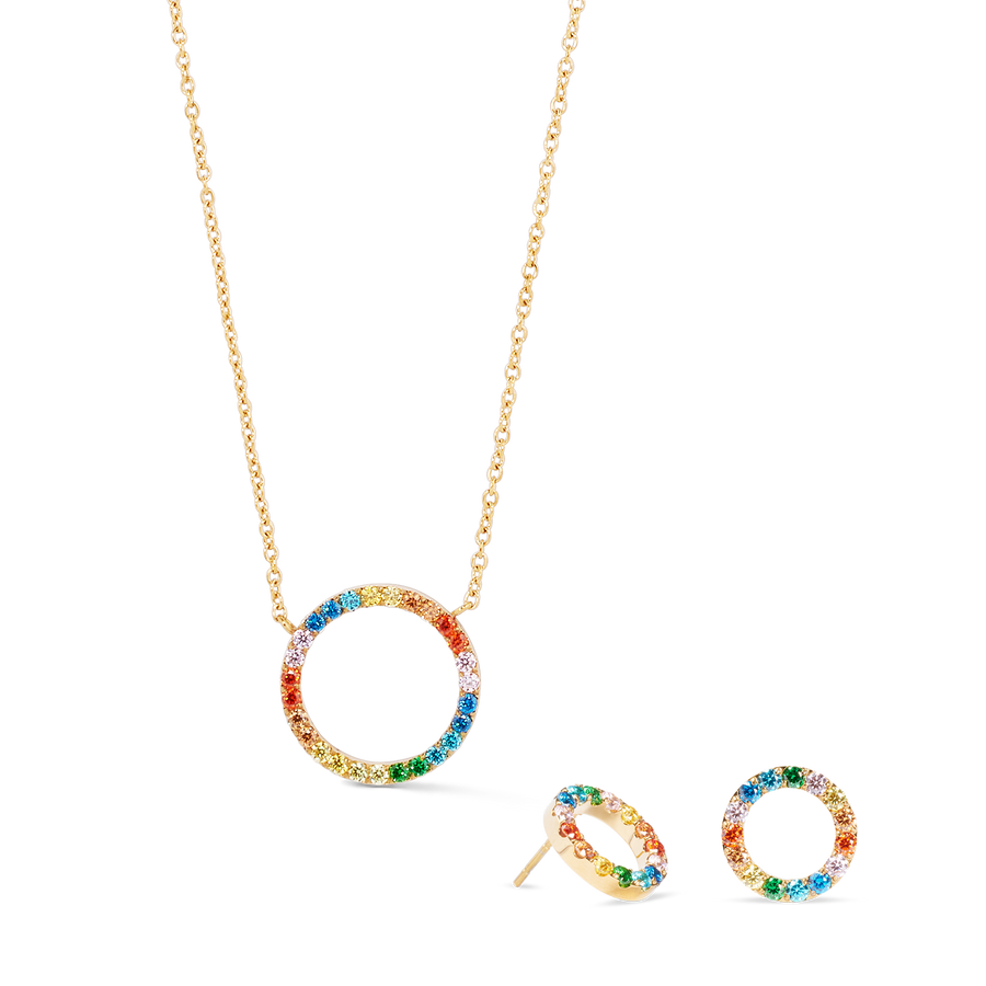 Colourful sparkle that never goes out of fashion - the Sparkling Circle gold multicolour earrings bring energy to your look! The fine stainless steel ring in gold is set with shimmering multicolour zirconia and creates a playful, modern design.