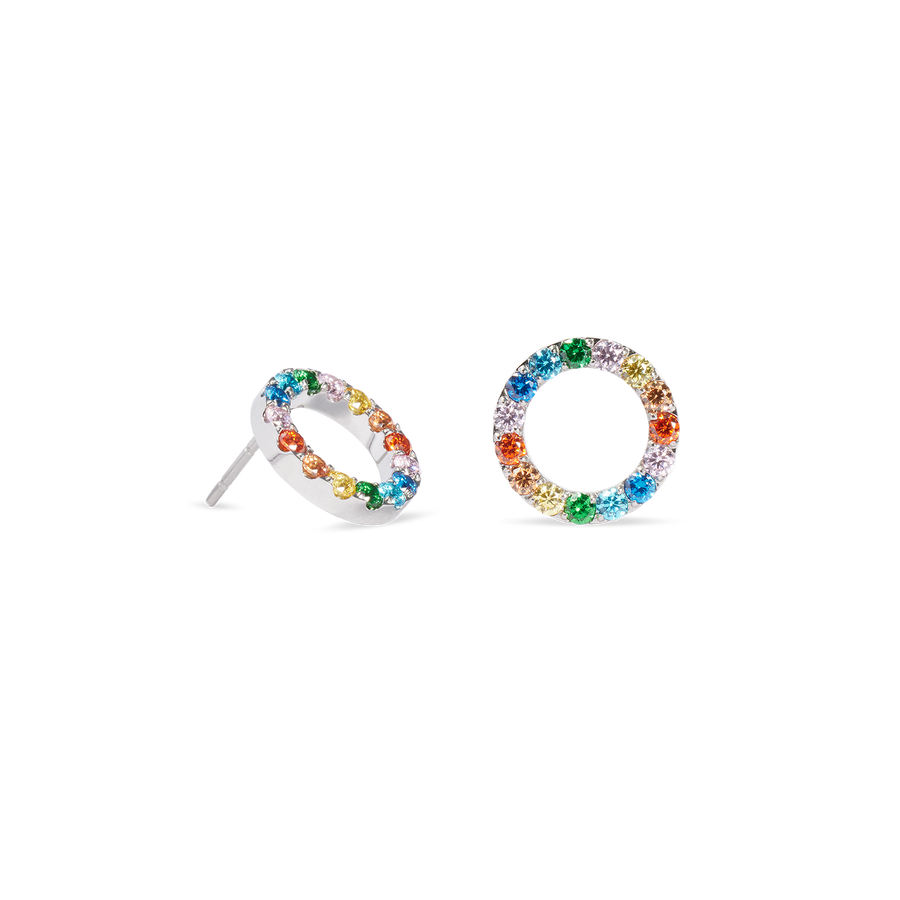 A touch of colour with cool elegance - the Sparkling Circle silver multicolour earrings feature a modern, clean design with a sparkling twist. The stainless steel ring in silver, set with colourful zirconia, makes these earrings the perfect highlight for any look.