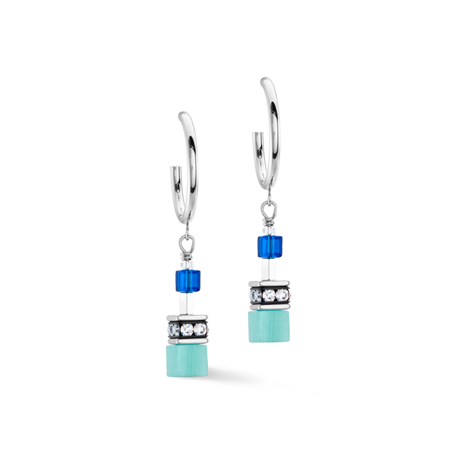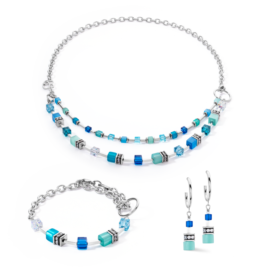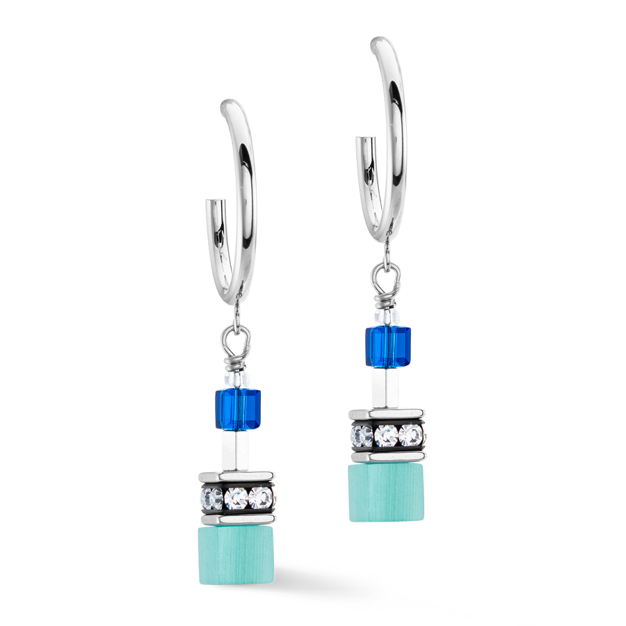 All about the colour blue - the GeoCUBE® Iconic Layer Chain Creoles Ocean Vibes. Matching the trendy denim look.