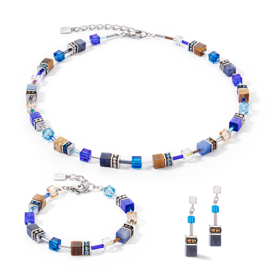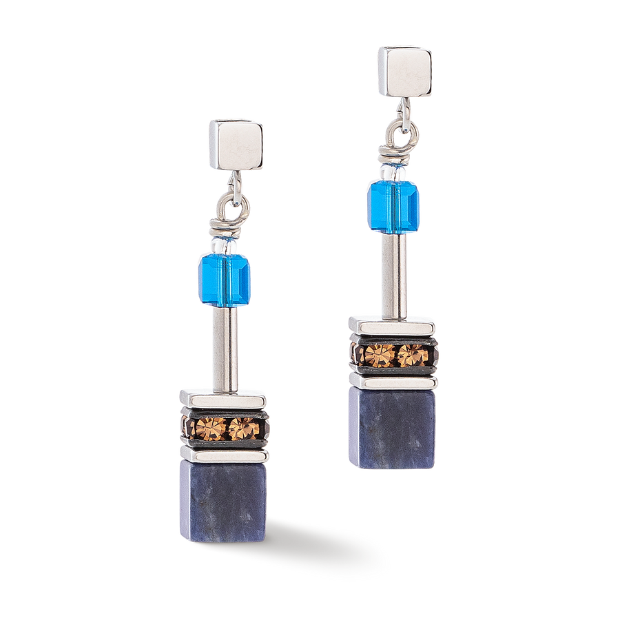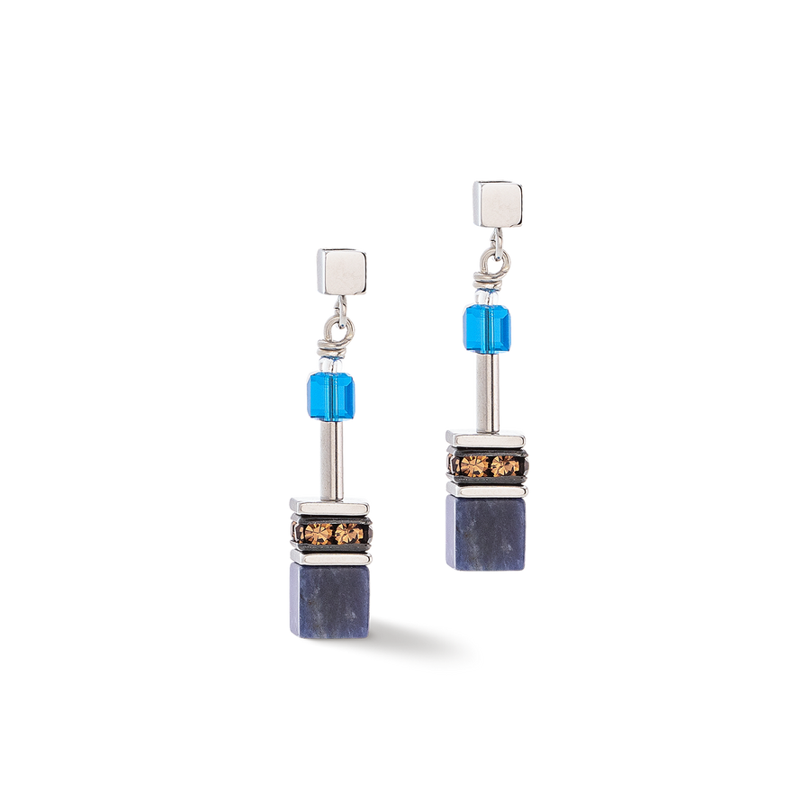 GeoCUBE® Iconic Precious earrings blue-brown - Stylish elegance with sodalite The GeoCUBE® Iconic Precious earrings in blue-brown are the perfect complement to the matching necklace and embody timeless elegance with a touch of mysticism. These exquisite earrings are made from precious GeoCUBES, crafted from genuine sodalite - a stone that symbolises clarity, rationality and inner balance. The deep blue tone of the sodalite harmonises beautifully with the warm brown nuances and gives the earrings a subtle yet powerful look. These earrings are not only a stylish accessory, but also carry the symbolic energy of sodalite, which helps to calm the mind and promote communication. Whether as a daily companion or as a special detail for festive occasions - the GeoCUBE® Iconic Precious Earrings Blue-Brown set stylish accents and emphasise your individual personality. Perfect for anyone who loves jewellery with meaning and charisma.