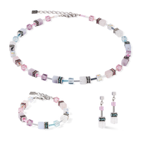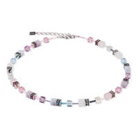 Soft pastel shades with a fascinating sparkle - the GeoCUBE® Iconic Precious necklace pink-lilac combines the delicate colours of chalcedony, rock crystal and rose quartz with precious Swarovski® crystal cubes. Fine details made of stainless steel in silver create a modern yet feminine look.