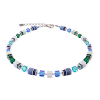 As deep as the sea, as radiant as the light on the waves - the GeoCUBE® Precious Statement Necklace silver-ocean combines cool blue tones, shimmering Swarovski® crystals and precious gemstone cubes to create a look that is both calming and mesmerising. The silver-coloured details add a modern touch, while the GeoCUBE® structure creates a harmonious, flowing design.