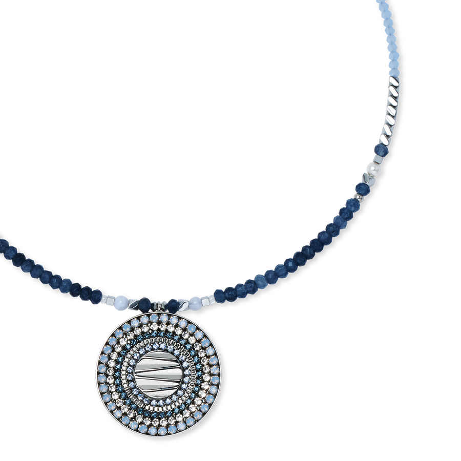 Future design with a statement factor - the Modern Future silver-blue amulet necklace takes modern elegance to the next level. The impressive 35 mm amulet combines high-precision cut Swarovski crystals, cool stainless steel and the striking "Wave" plate in silver. Clear lines, dynamic reflections and a perfect balance of light and structure make this piece of jewellery the epitome of modernity. Perfect for anyone who combines minimalism with maximum impact - and even better in a set with the Round Wave silver ear studs.