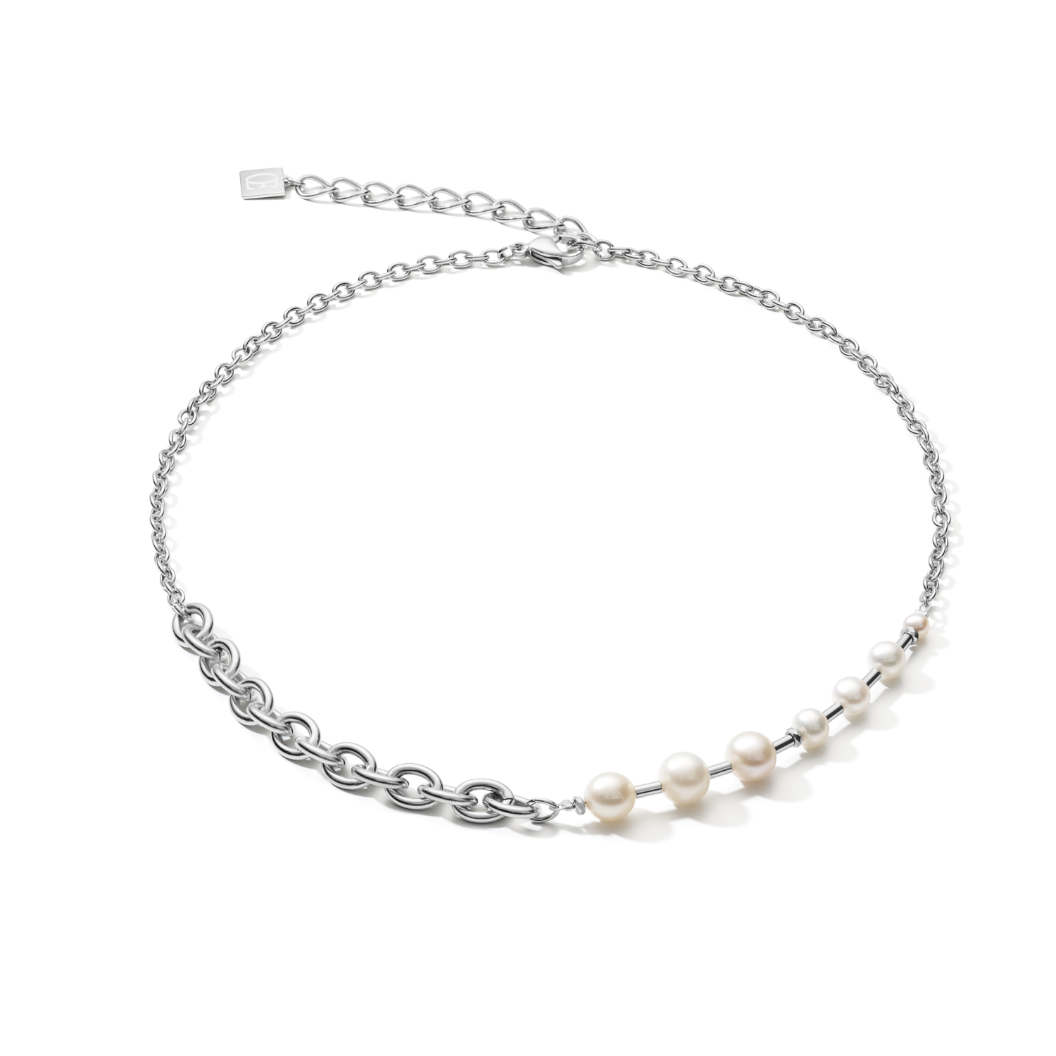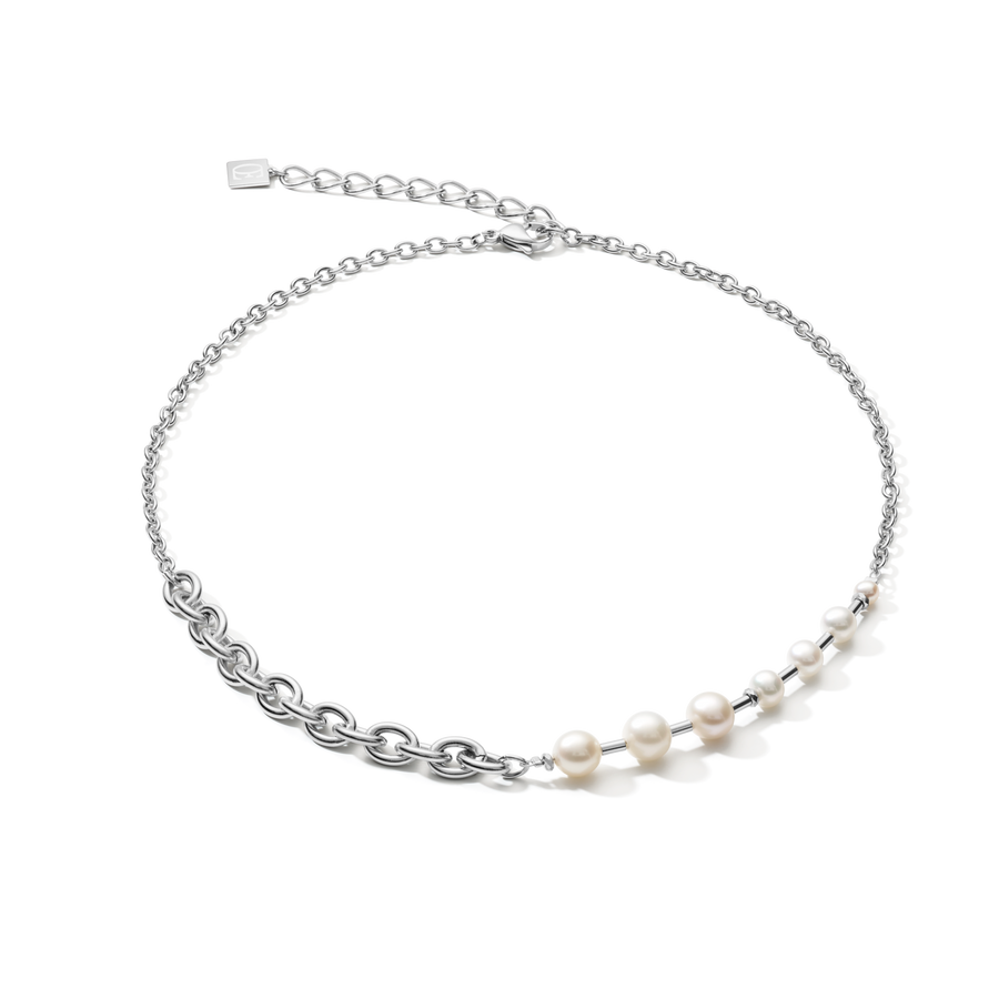 Necklace classic & modern Freshwater pearls & stainless steel chain white-silver