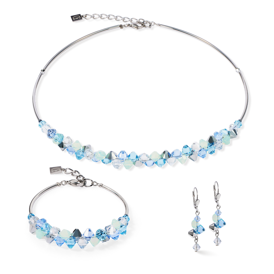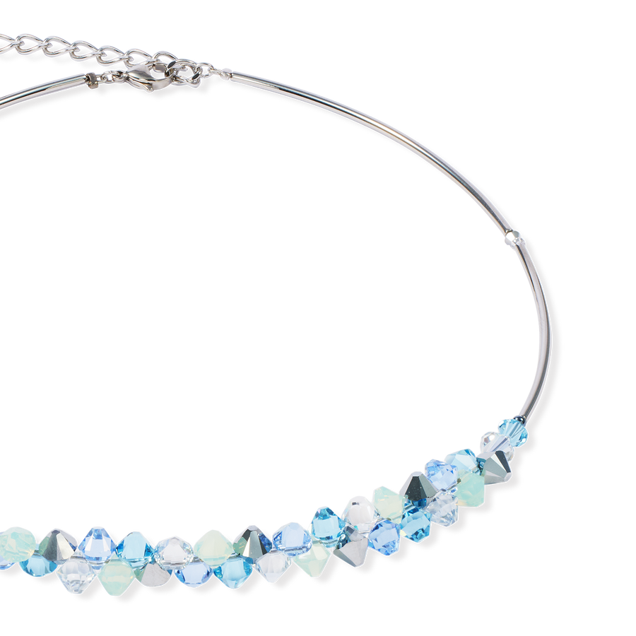 Lightness meets futuristic glamour - the Dancing Crystals silver-blue necklace brings movement to your styling. Precisely cut Swarovski crystals in a modern rhombus cut reflect the light with every movement and ensure dynamic elegance. Combined with cool stainless steel, the result is a piece of jewellery that combines minimalism with radiant depth.