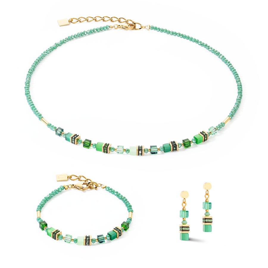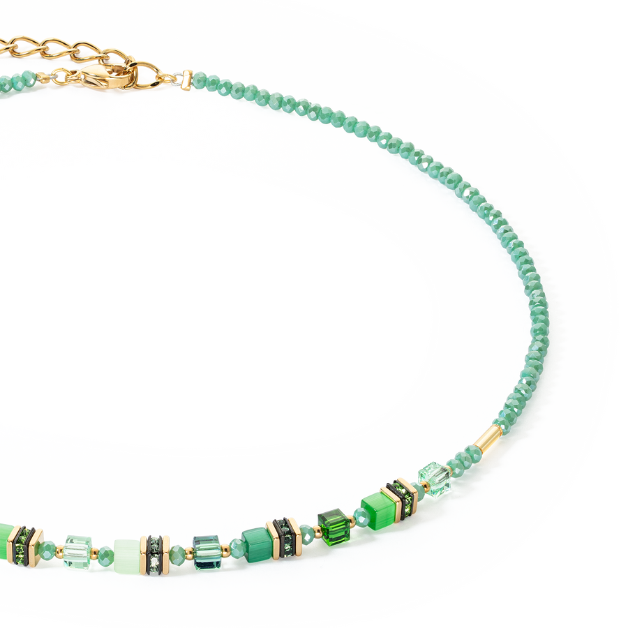 Necklace in a Mini Cubes design. Complements the latest fashions perfectly with its trendy gold and green colourway.