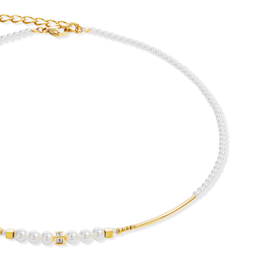 Delicate, sophisticated, with a regal shimmer - the Shimmering Princess Pearls gold and white necklace combines the gentle elegance of Crystal Pearls by Swarovski® with gleaming stainless steel in gold. The harmonious combination of shimmering white tones and luxurious accents lends the piece of jewellery a sophisticated lightness. Perfect for anyone who wants to combine classic beauty with modern design.