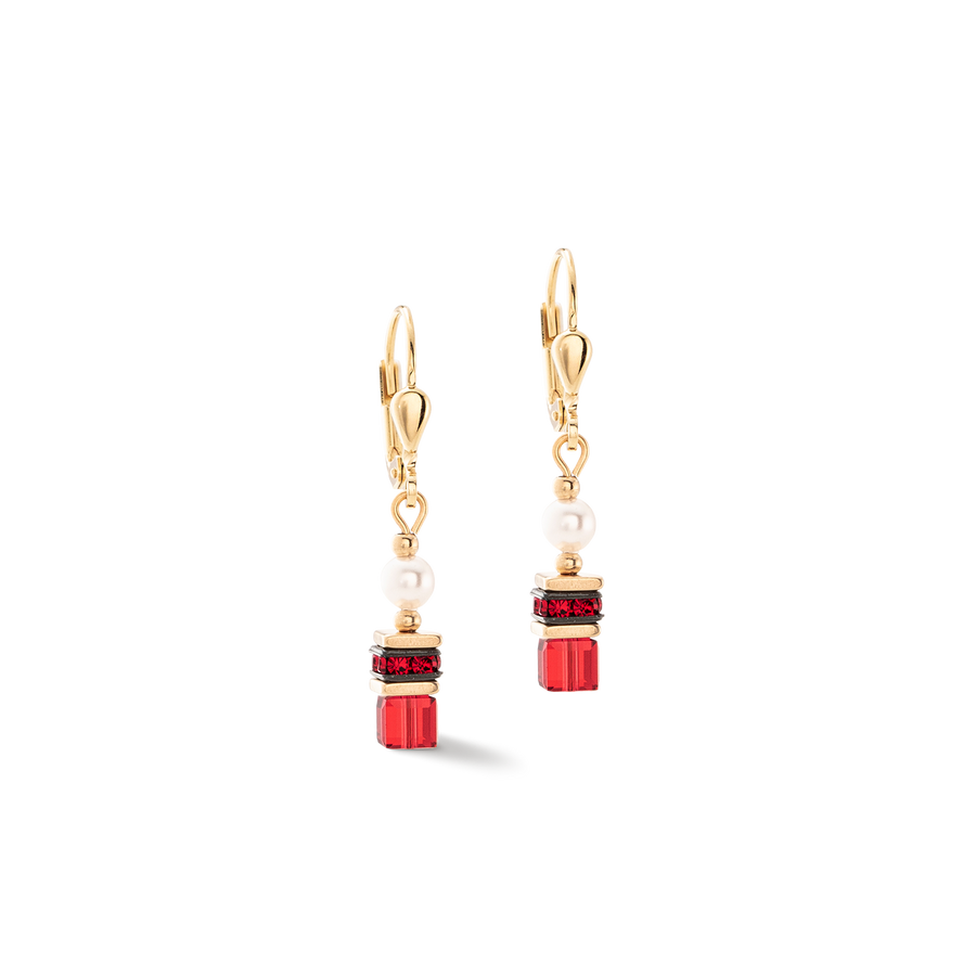 Sparkling Princess gold and red earrings - festive glamour for your look The "Sparkling Princess" earrings in gold and red are the perfect accessory to add the finishing touch to your festive look. These elegant earrings combine sparkling red crystals with delicate pearls and gold-coloured elements that blend together in a harmonious design. The bright red accents add a touch of glamour, while the gold details convey a sophisticated and timeless elegance. With their subtle yet eye-catching design, the "Sparkling Princess" earrings are ideal for the festive season - whether as an eye-catcher on special occasions or as a stylish detail in everyday life. The practical hinged fasteners ensure a secure fit and high wearing comfort, so you can feel comfortable all evening long. Add a sparkling accent to your outfit with these earrings and enjoy the luxurious charm that the "Sparkling Princess" earrings exude. A must-have for any jewellery collection that perfectly combines elegance and festive sparkle.