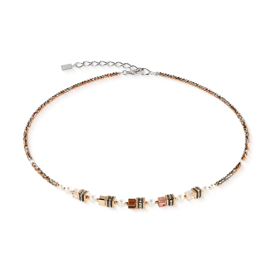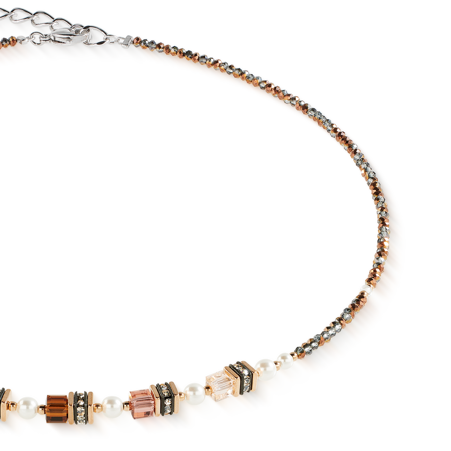 The Sparkling Princess necklace in the on-trend colour Mocha Mousse brings together soft brown tones, shiny rose gold and cool silver in perfect harmony. Elegant cubes and shimmering pearls create a modern look with depth and lightness. The elegant colour composition makes this necklace a versatile companion - ideal for relaxed casual outfits or stylish evening moments.Every piece of jewellery ordered from COEUR DE LION will be delivered to you in a premium designer case and with a certificate of authenticity.